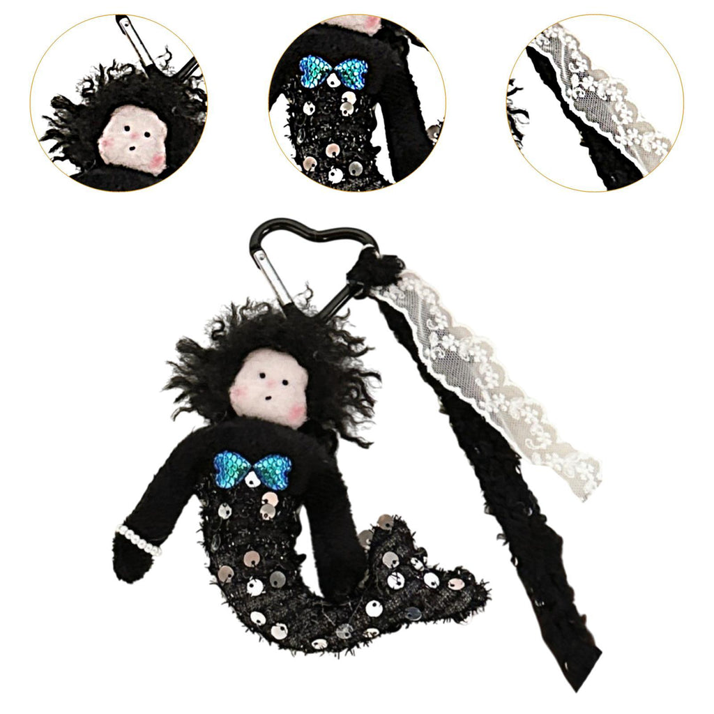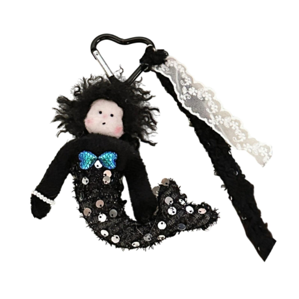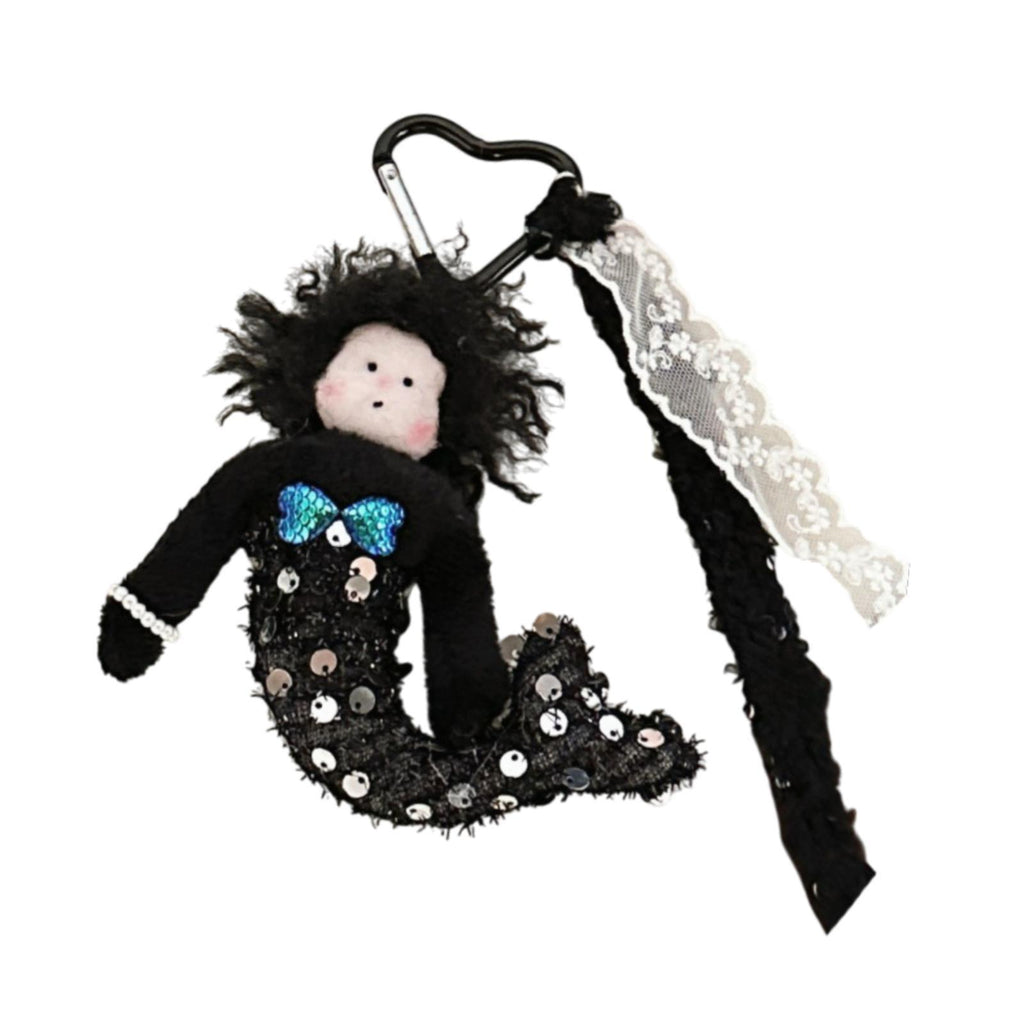 Maxbell Sequins Mermaid Doll Pendant Keychain Bag Pendant for Car Keys Travel Wallet Black