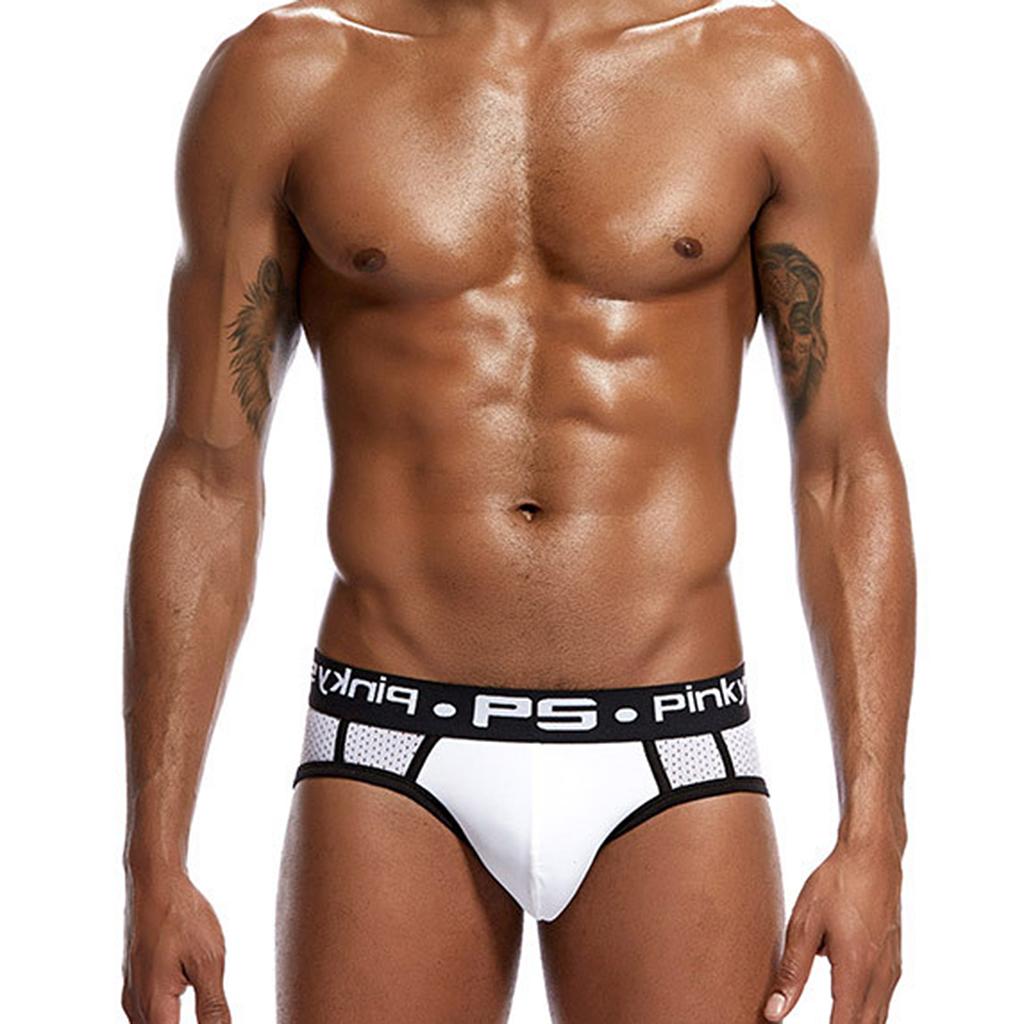 Maxbell Sexy Men Stretchy Mesh Panties Low Rise Underwear Sports Underpants L White