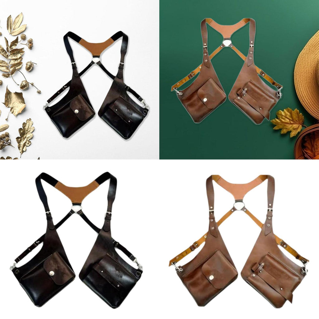 【Fashionable Design】: Featuring a double shoulder design with crisscross back straps, this shoulder harness bag exudes a stylish and elegant vintage that effortlessly complements any outfit