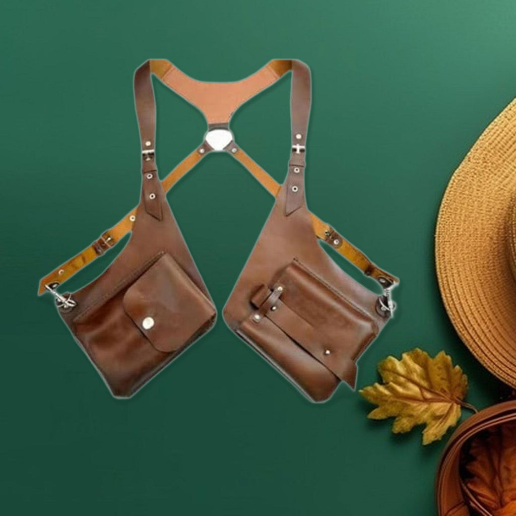 Maxbell Shoulder Harness Bag Men Women Trendy Pouch for Biking Travel Cosplay Events Brown