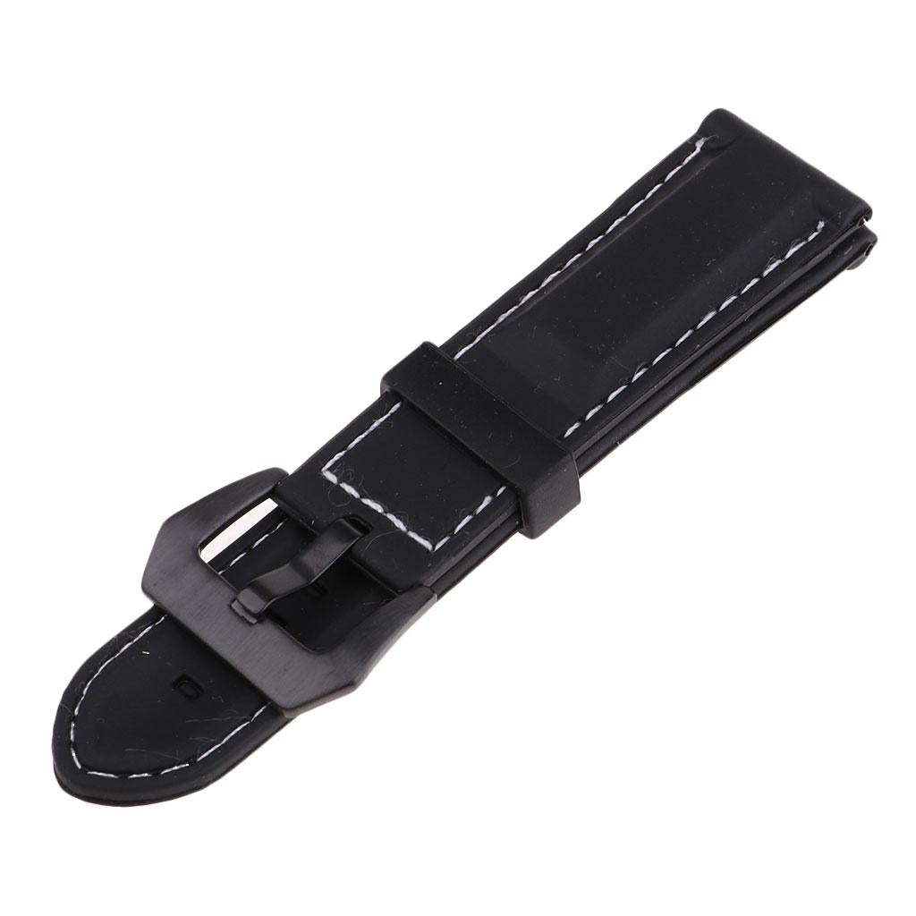 Maxbell Silicone Universal Sports Watch Band Waterproof Strap 24mm Black Buckle
