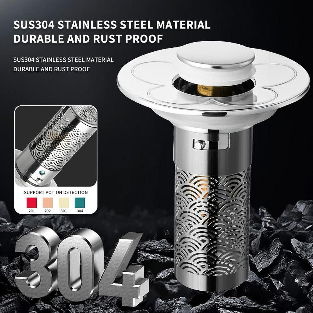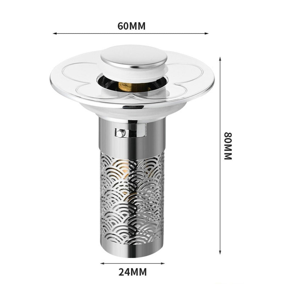 【Innovative Design】: This universal bathroom sink drain stopper adopts an innovative 2 in 1 design, which can effectively intercept hair and debris, prevent clogging, ensure smooth drainage, and allow you to maintain it easily