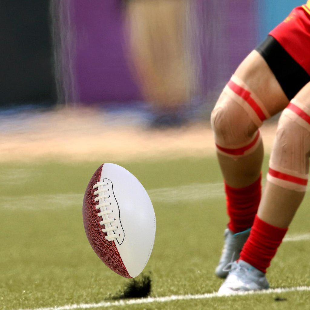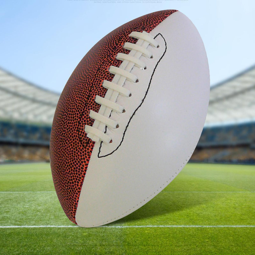 【Quality Materials】: Made from PVC, artificial leather and rubber materials, this Rugby Ball is soft and comfortable to touch, ensuring a safe and enjoyable playing experience