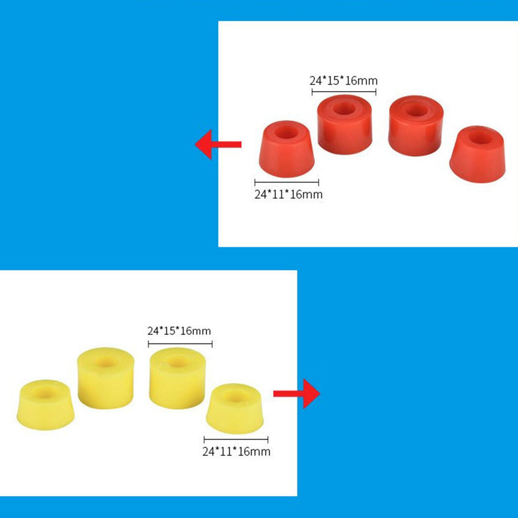 【Complete set】: This skateboard truck bushings set includes 2 cone shaped and 2 cylindrical bushings, totaling 4 pieces. Nice for your skateboard modification and maintenance needs