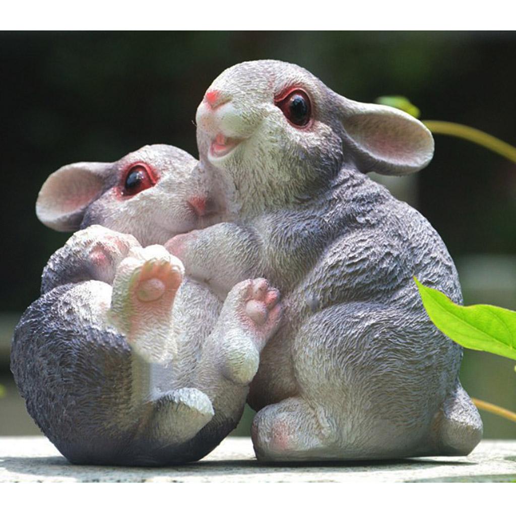 Max Small Resin Rabbit Bunny Figurine Statue Outdoor Lawn Yard Decor Hug _Gray