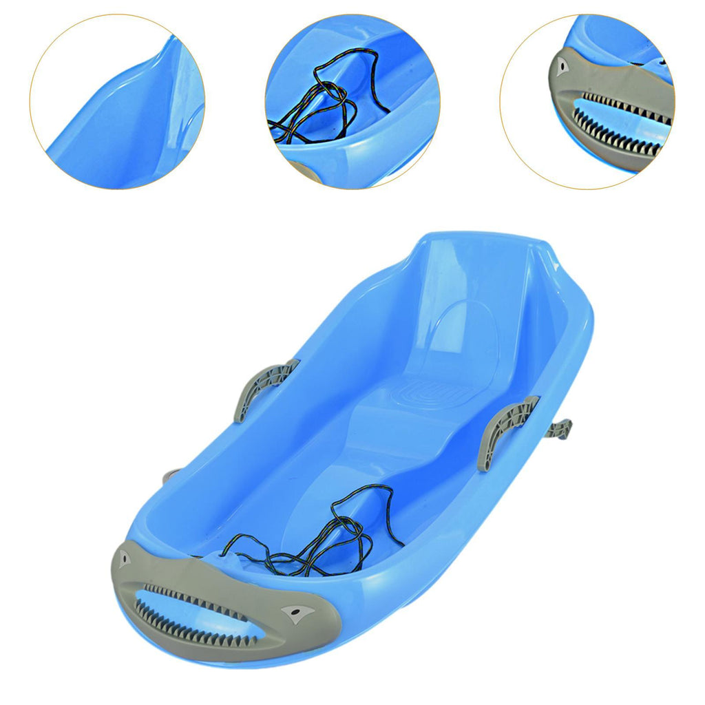 Maxbell Snow Sled with Pull Rope and Handle Grass Sliding Sled for Lawn Yard Outdoor Blue Shark