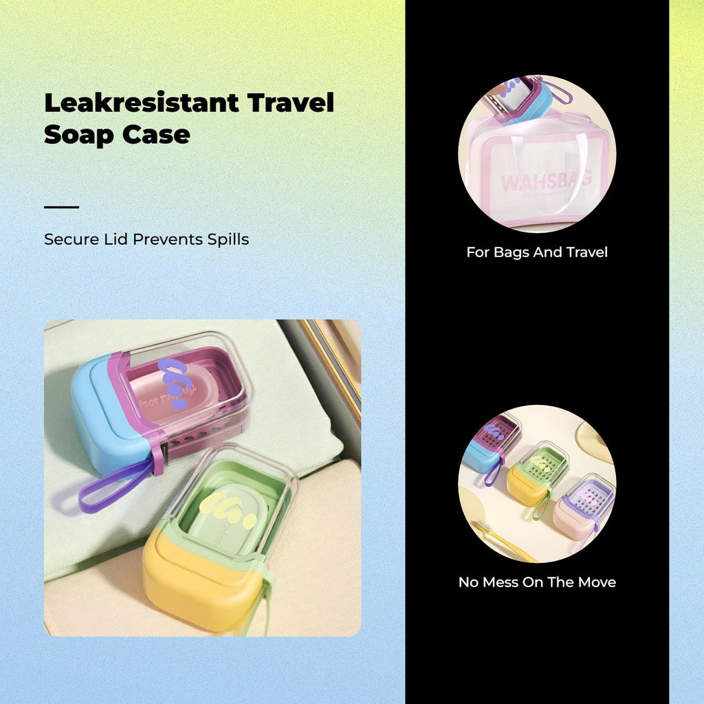 【Portable Leakproof Soap Case for Travel and Home】This doubletier soap holder keeps your soap dry and clean, making it perfect for travel, gym, camping, and common bathroom use. Its leakproof design prevents any mess in your bag or luggage.【Doubletier Draining Design】The removable drainage tier lets water drain quickly, keeping your soap elevated and helping it last longer. The secure lid provides additional protection and maintains your soap’s hygiene.【sturdy and High-Quality Material】Crafted from materials, this soap case is lightweight, shatterproof, and easy to clean. Its small size makes it convenient to carry in any bag or suitcase.【Versatile and Stylish】Perfect for use in bathrooms, kitchens, dorms, hotels, and outdoor activities. The modern, functional design suits various environments and keeps your soap neat and organized.【Easy to Use and Maintain】The tight-fitting lid and comfortable grip allow for easy opening and closing. The soap container is simple to clean, ensuring long use.Specification: