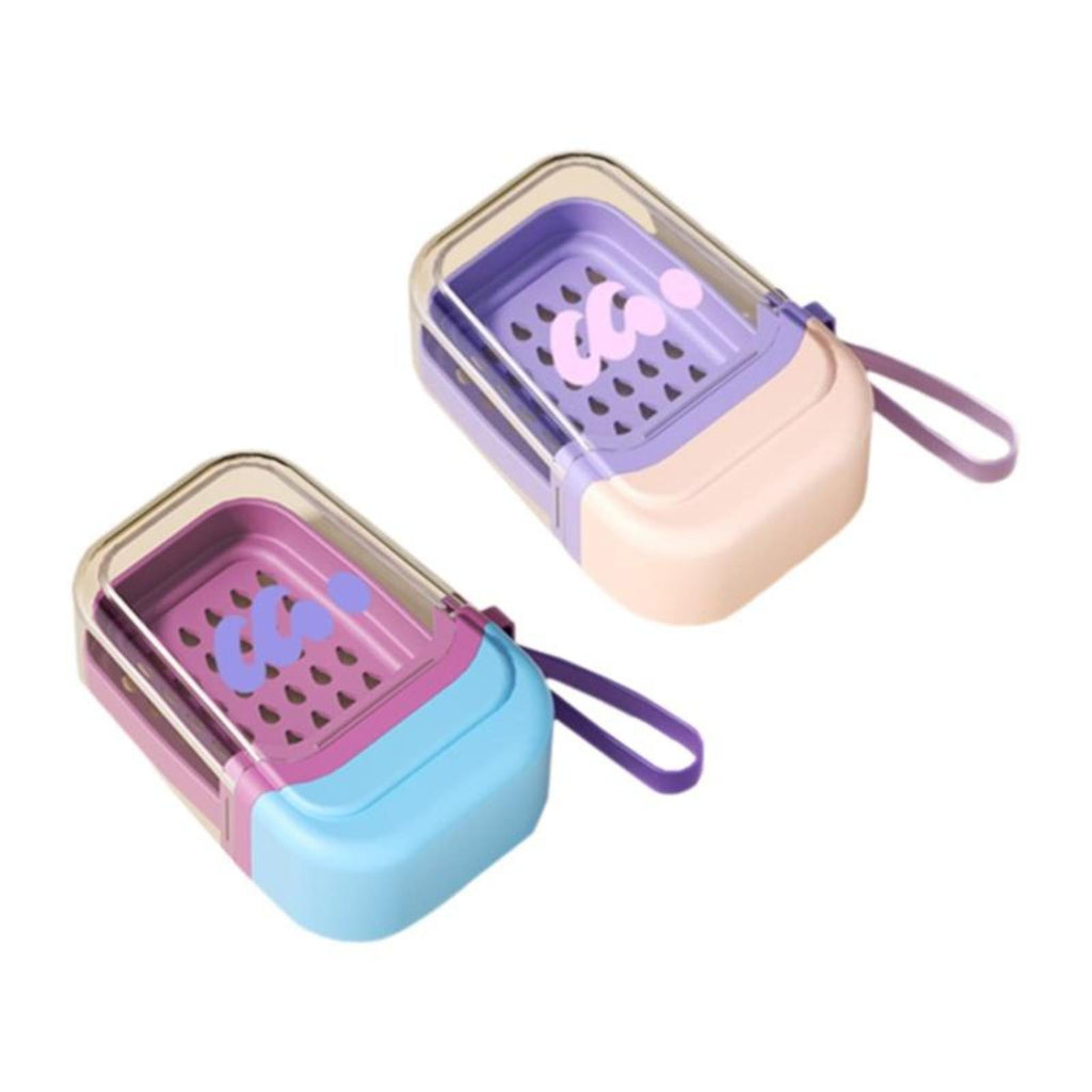 Soap case, Portable Leakproof Soap Holder, Double-tier Drainage, Travel, Bathroom Blue+Pink Purple