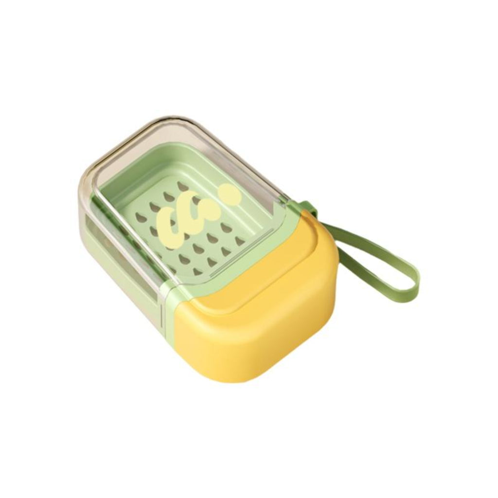 Soap case, Portable Leakproof Soap Holder, Double-tier Drainage, Travel, Bathroom Yellow Green