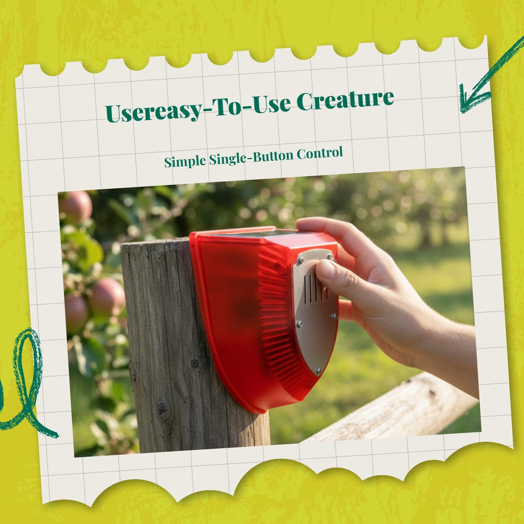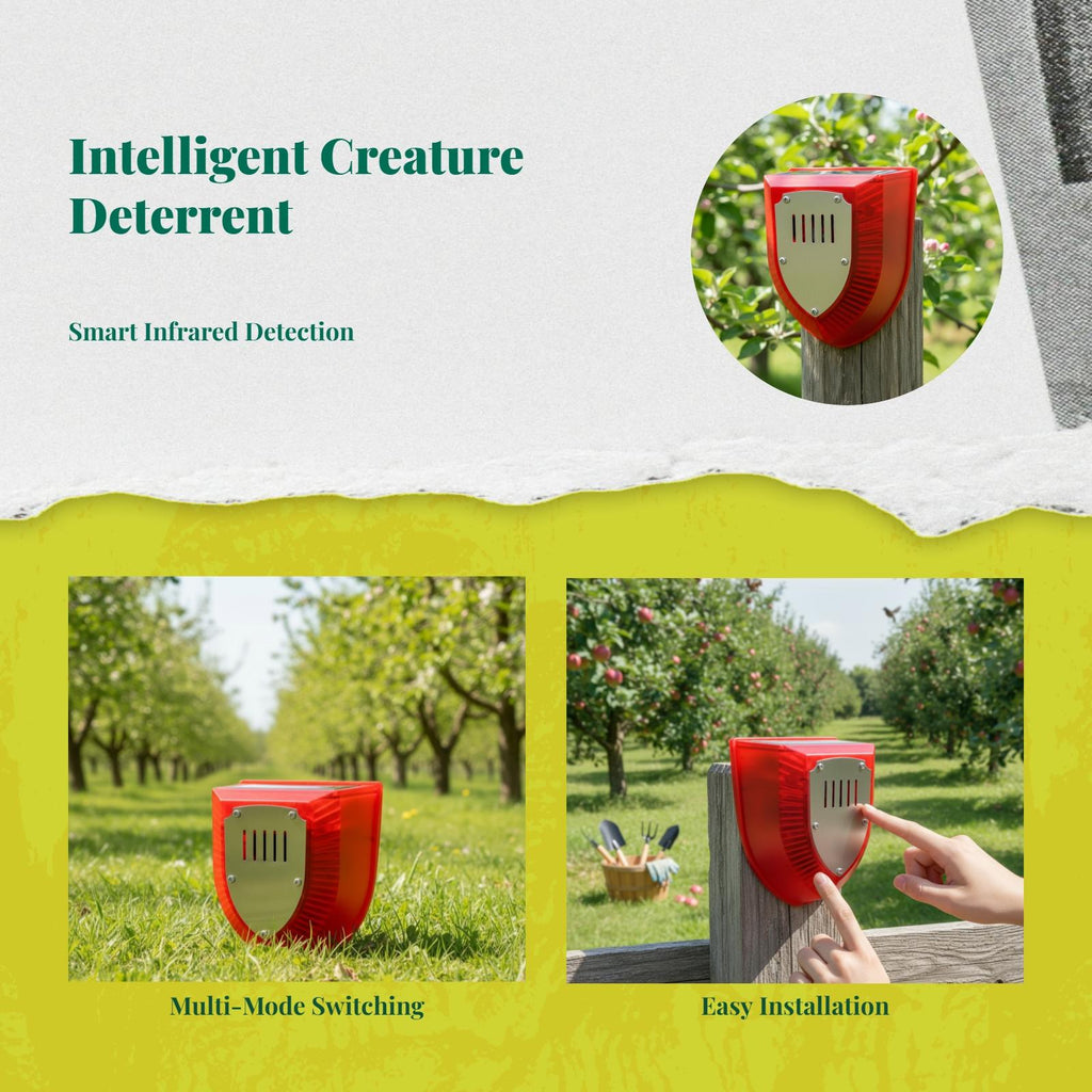 【Effective Solar creature for Outdoor Protection】Combining solar-powered motion activation and a powerful dog growl sound, this device efficiently deters unwanted creatures from gardens, yards, and farms, keeping your outdoor spaces 【Motion Activated with Flashing 】Equipped with a sensitive motion and flashing s, it automatically activates at night or when movement is detected, providing dependable creature deterrence.【Waterproof and Sturdy Construction】Built with weather-resistant materials and IP65 waterproof this creature is suitable for all-weather outdoor use, ensuring long performance in gardens, lawns, and farms.【Adjustable Sensitivity and Range】Customize the detection range and sensitivity to target specific creatures such as untamed boars, birds, raccoons, and more, making it adaptable for various outdoor scenarios.【Easy Installation and Energy Efficient】Solar-powered with hassle setup, this device offers energy-efficient and requires minimal maintenance, making it perfect for protecting your property day and night.