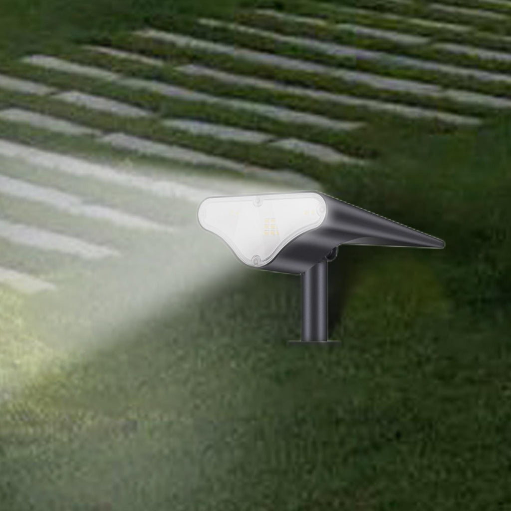 High Brightness with 15 LEDs & Long Working Time: solar spotlight with 15 high-brightness LED lamp beads & 1500mAh battery, working time up to 9 hours. Adjustable angle of the lights and solar panel.