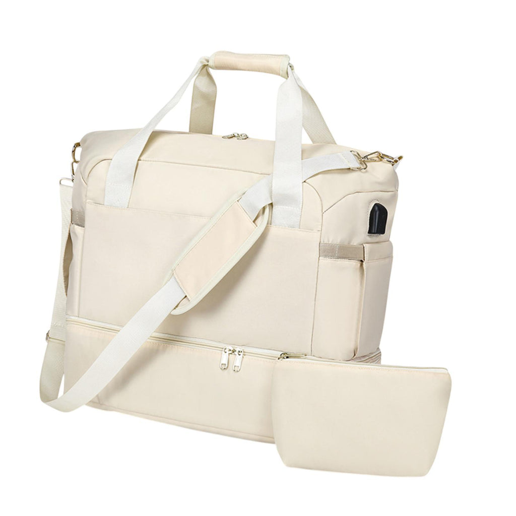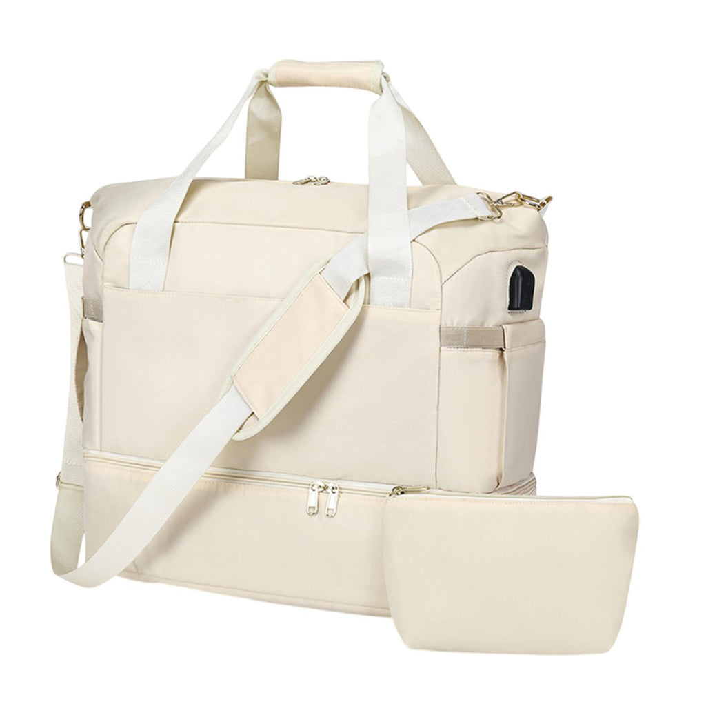 【Wet and Dry Separation Luggage Bag】: Designed with a spacious main compartment to store your clothes and essentials. It includes a zippered waterproof PVC lined pocket for wet items like clothes or swimsuits. Additionally, it comes with a small makeup pouch for easy storage of personal items