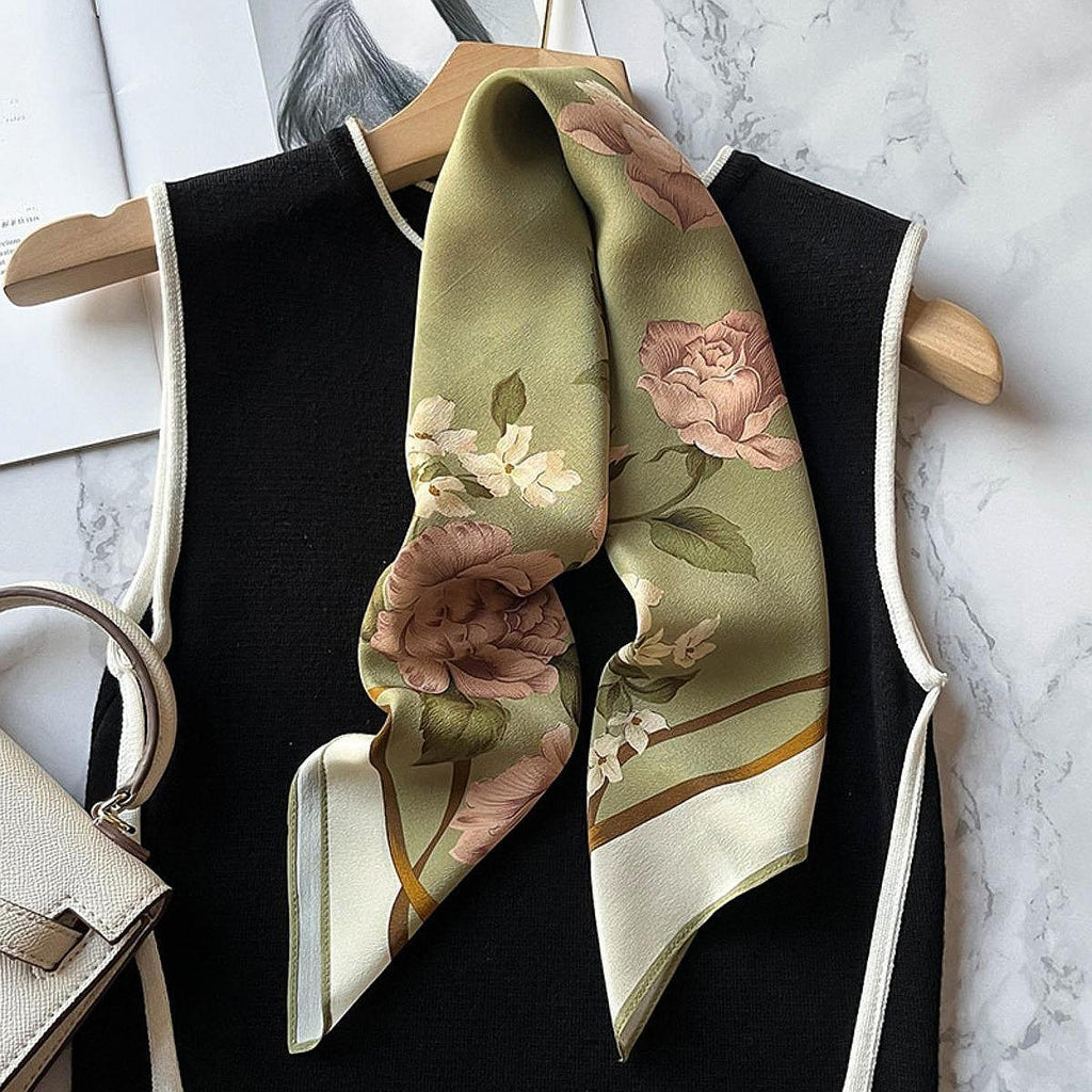 【Elegant Design】: The women silk scarf features a sophisticated print that enhances your look with its soft and elegant drape, making it a versatile accessory for any outfit