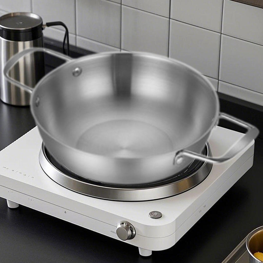 Maxbell Stainless Steel Paella Pan Easy to Clean Seafood Pot for Travel Kitchen Soup 20cm
