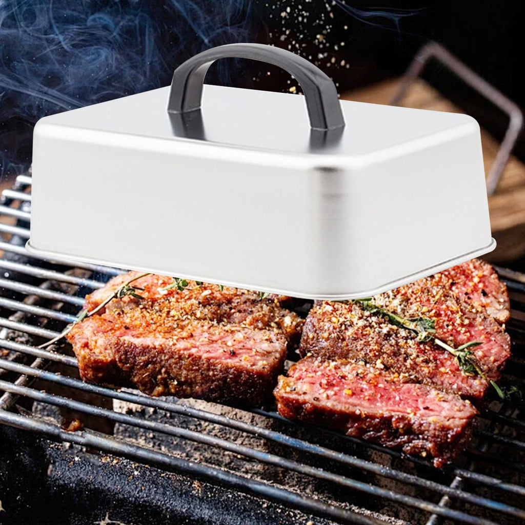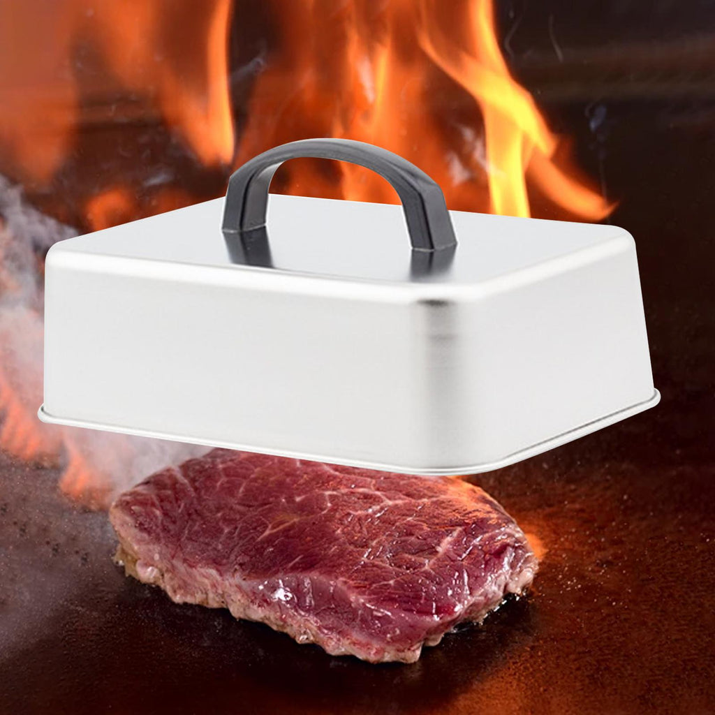 【Wide application】: Stainless steel burger cover is suitable for burgers, sandwiches, steaks, and for beefs, bacons, potatoes, other, salmon, pizzas, sandwiches, can shorten cooking time and increase the flavor of food