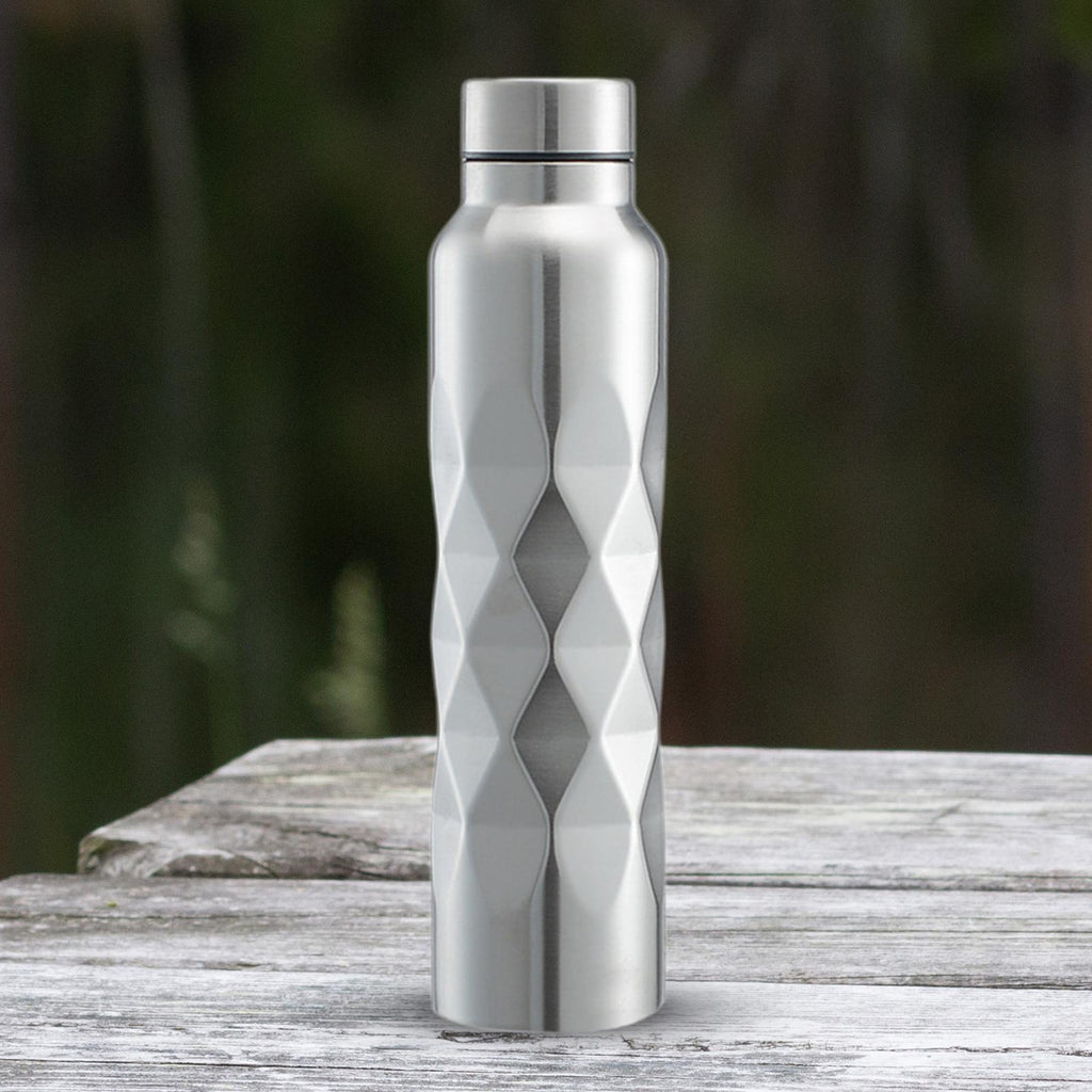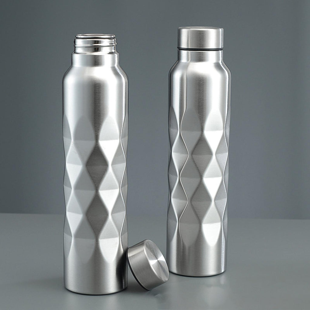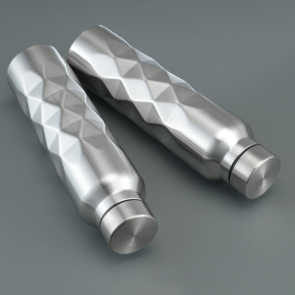 - 【Design and Color】: The bottle features a stylish straight body design with a unique rhombic shape, combined with the natural color of stainless steel, giving it a fashionable and sophisticated look in argent color.