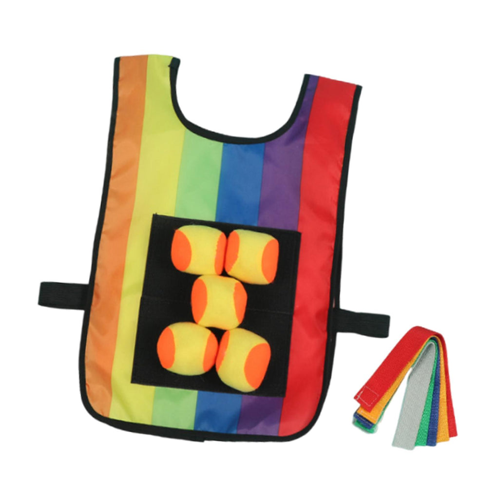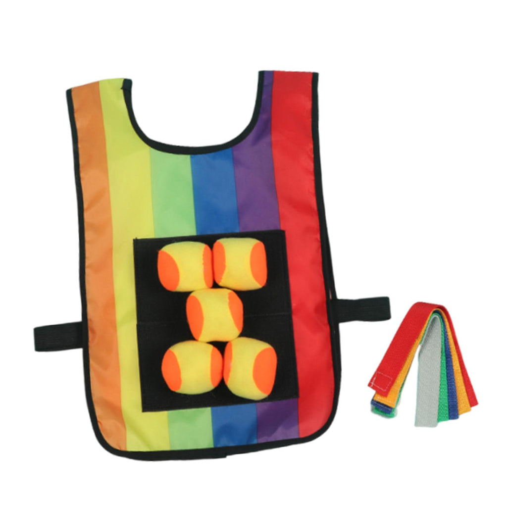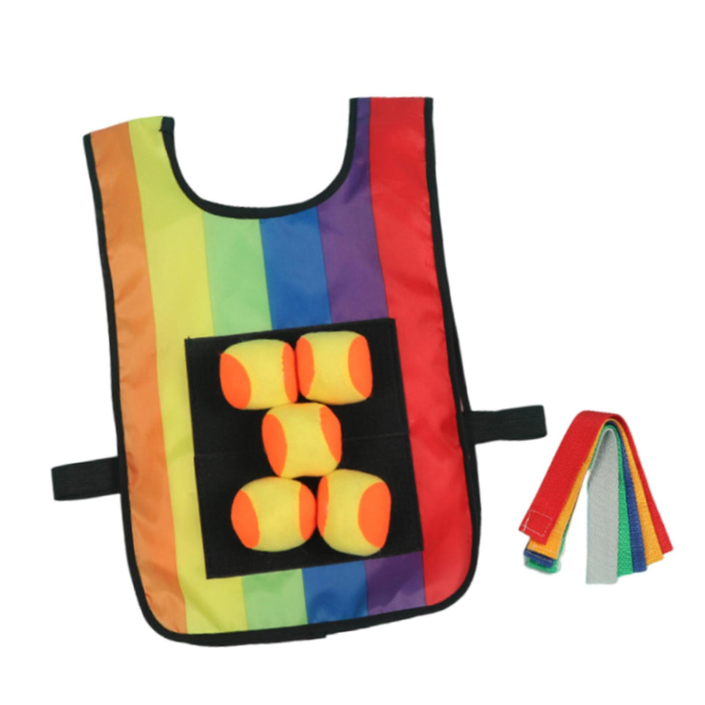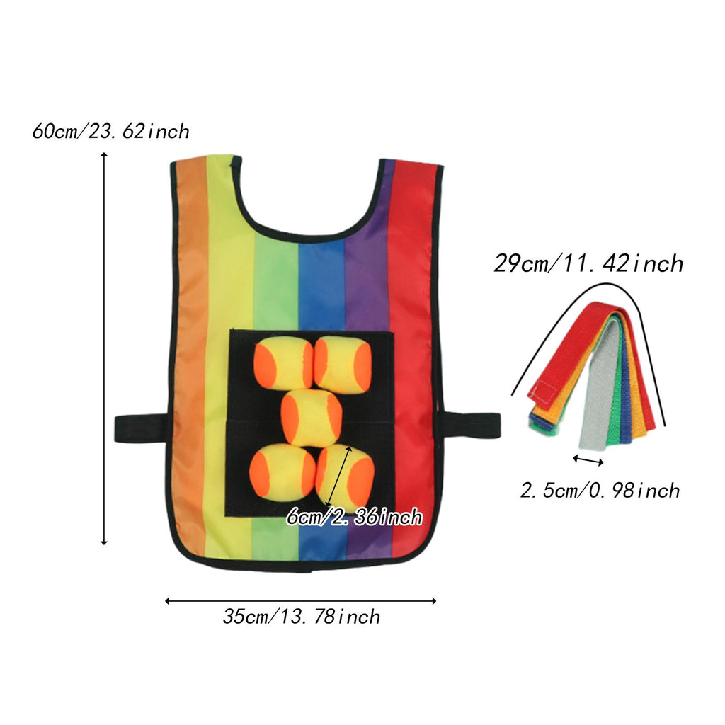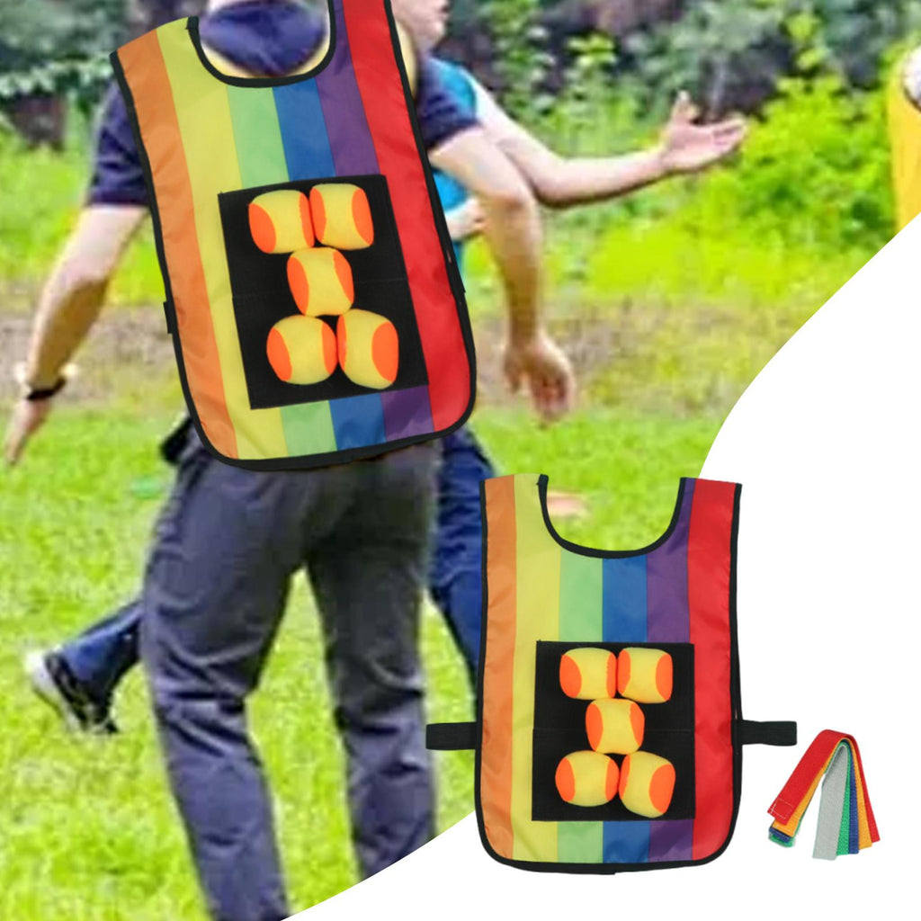【Bright design & easy wear】: Featuring a bright and colorful design, this launching ball game vest includes elastic bands on the sides for easy wearing and removal
