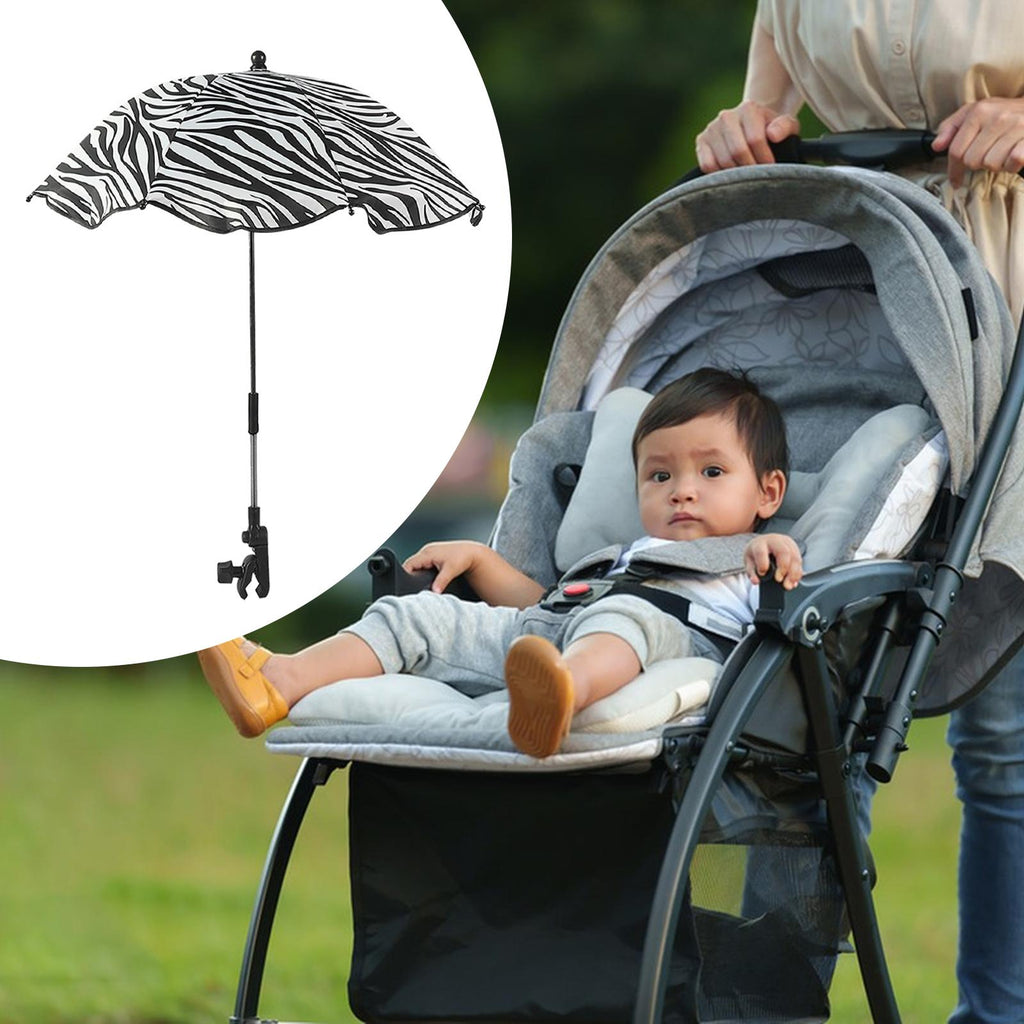 Maxbell Stroller Parasol Sun Protection Clamp on Umbrella for Traveling Outdoor black white