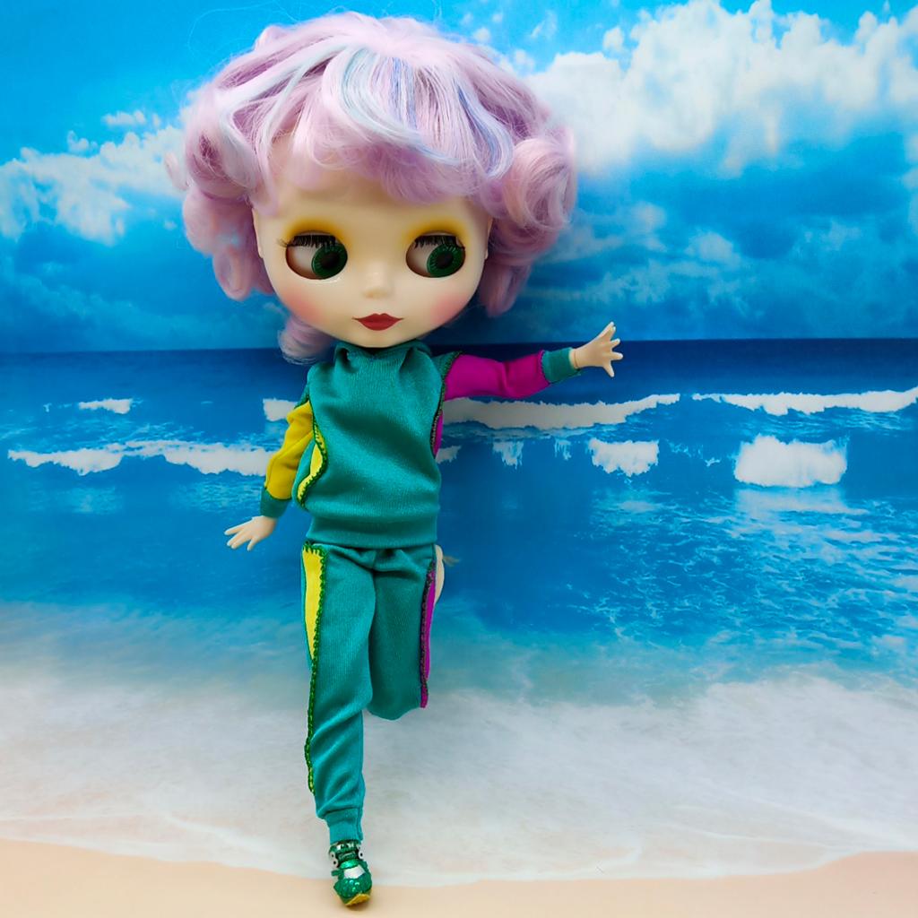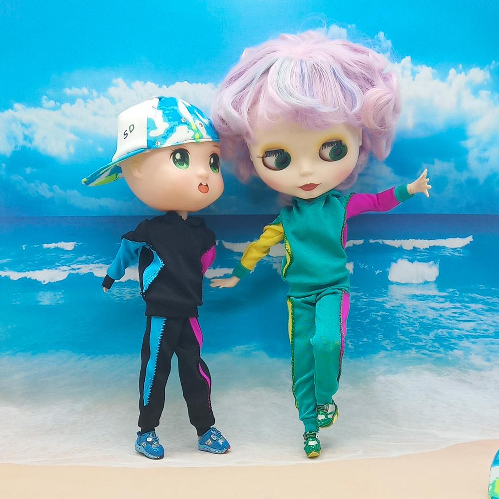 Max Stylish Sports Costume Set Hooded Pullover & Trousers For Blythe Doll Blue