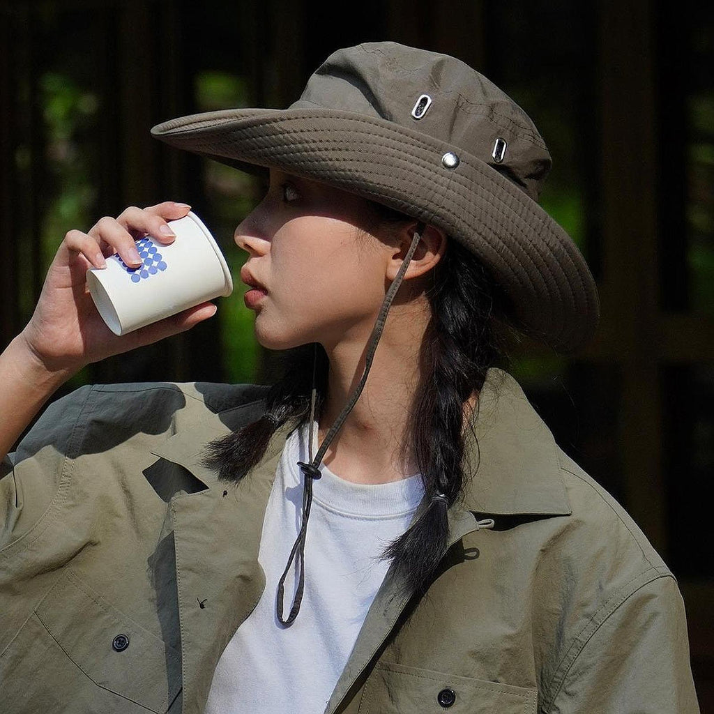 【Adjustable Drawstring System】: Featuring a specially designed drawstring system, this outdoor hat allows for easy adjustment to suit various outdoor environments and personal preferences. Whether you're fishing in windy conditions or engaging in vigorous activities like mountain climbing, the drawstring ensures the hat stays securely on your head
