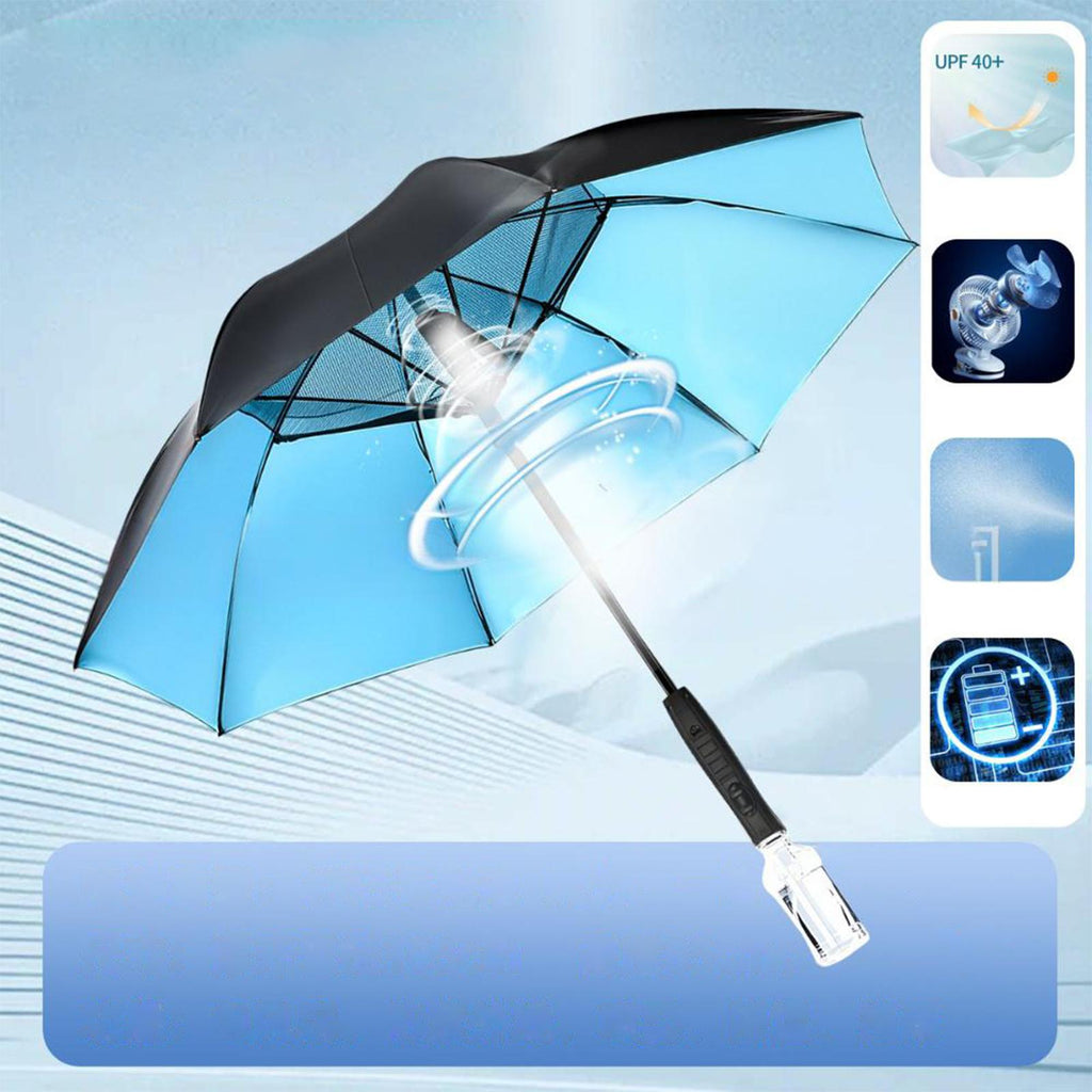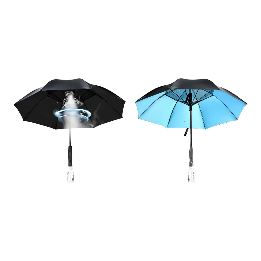 Maxbell Sun Umbrella with Fan Misting Windproof Portable for Outdoor Golfing Fishing Blue
