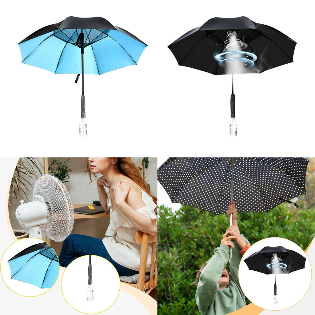 - 【Application】Umbrella Fan with a long handle remains easy to carry, ideal for fishing, golfing, beaches, camping, or picnics. Rainproof fabric also makes it weather resistant