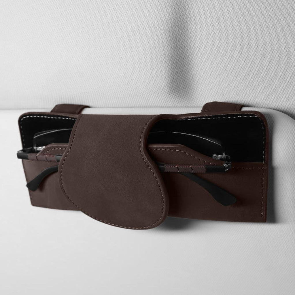 Maxbell Sunglasses Holder for Car Sun Visor Durable Travel Document Holder Universal brown