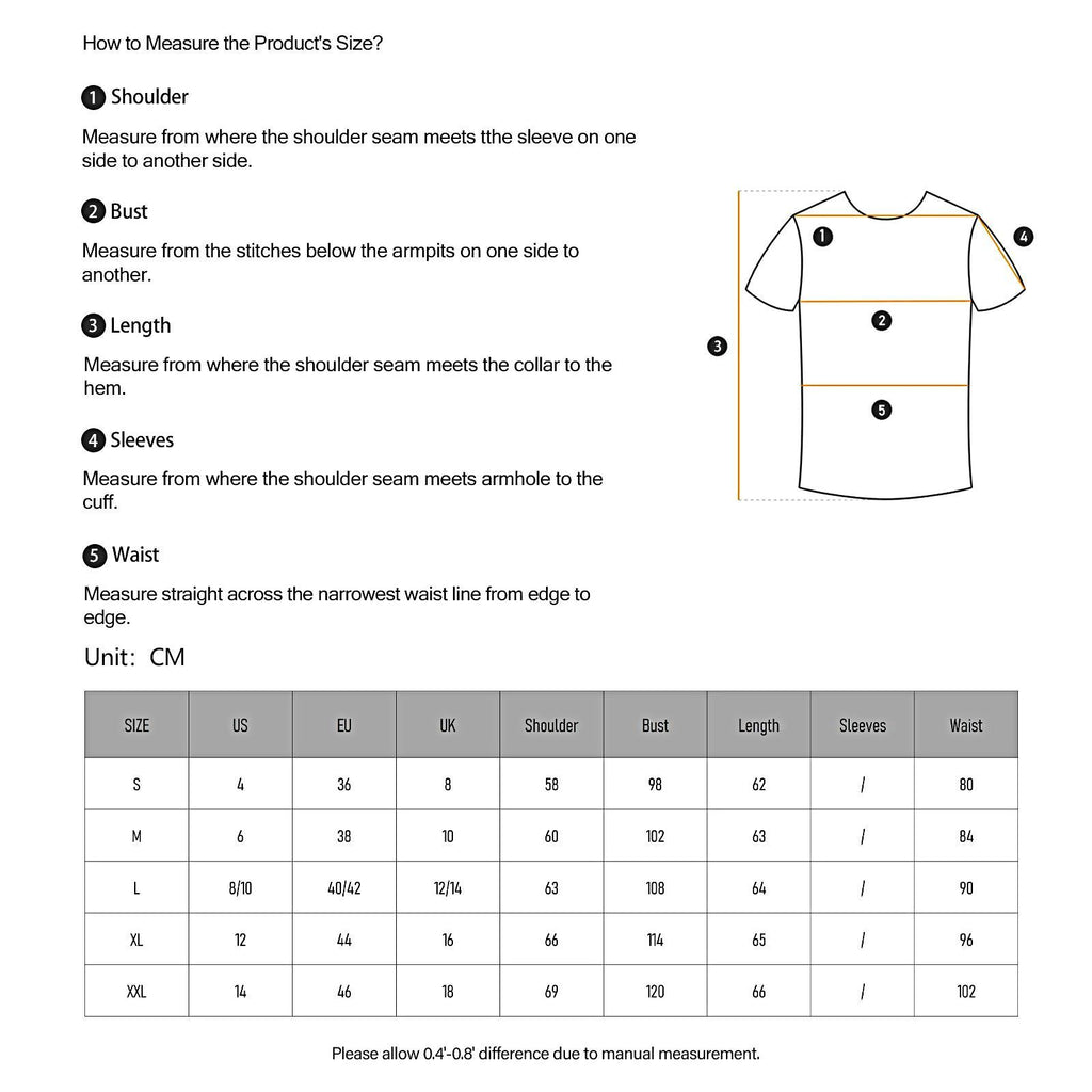 Waist 90cm/35.43inch,Bust 108cm/42.52inch,Length 64cm/25.20inch,Shoulder Width 68cm/26.77inchPackage Includes: