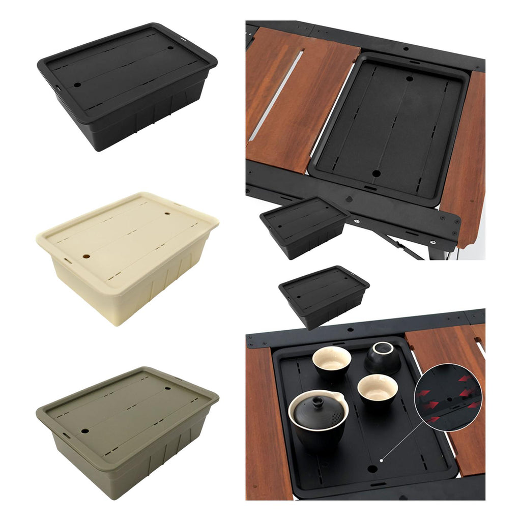 【Versatile design】: The kungfu tea storage box features a multifunctional design with a drainage lid, making it an ideal companion for camping tables. It can be used both as a storage box and a tea tray, offering great versatility for outdoor activities