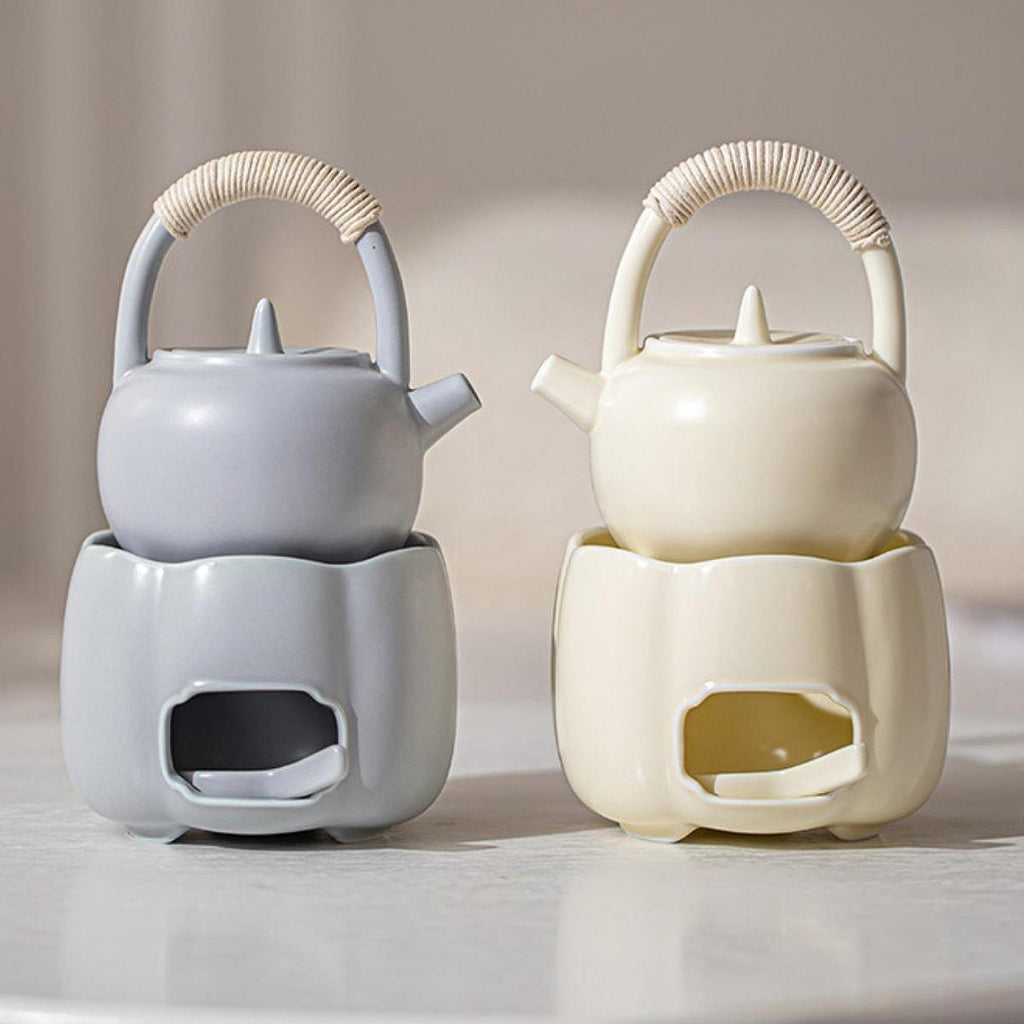 【Elegant Design】: This tea pot with warmer set features a beautifully crafted ceramic design, great for adding a touch of sophistication to your tea time rituals