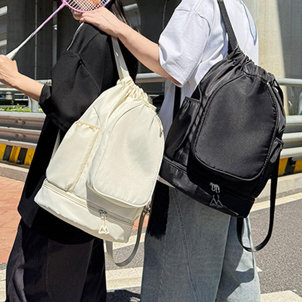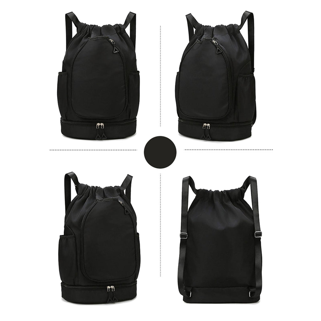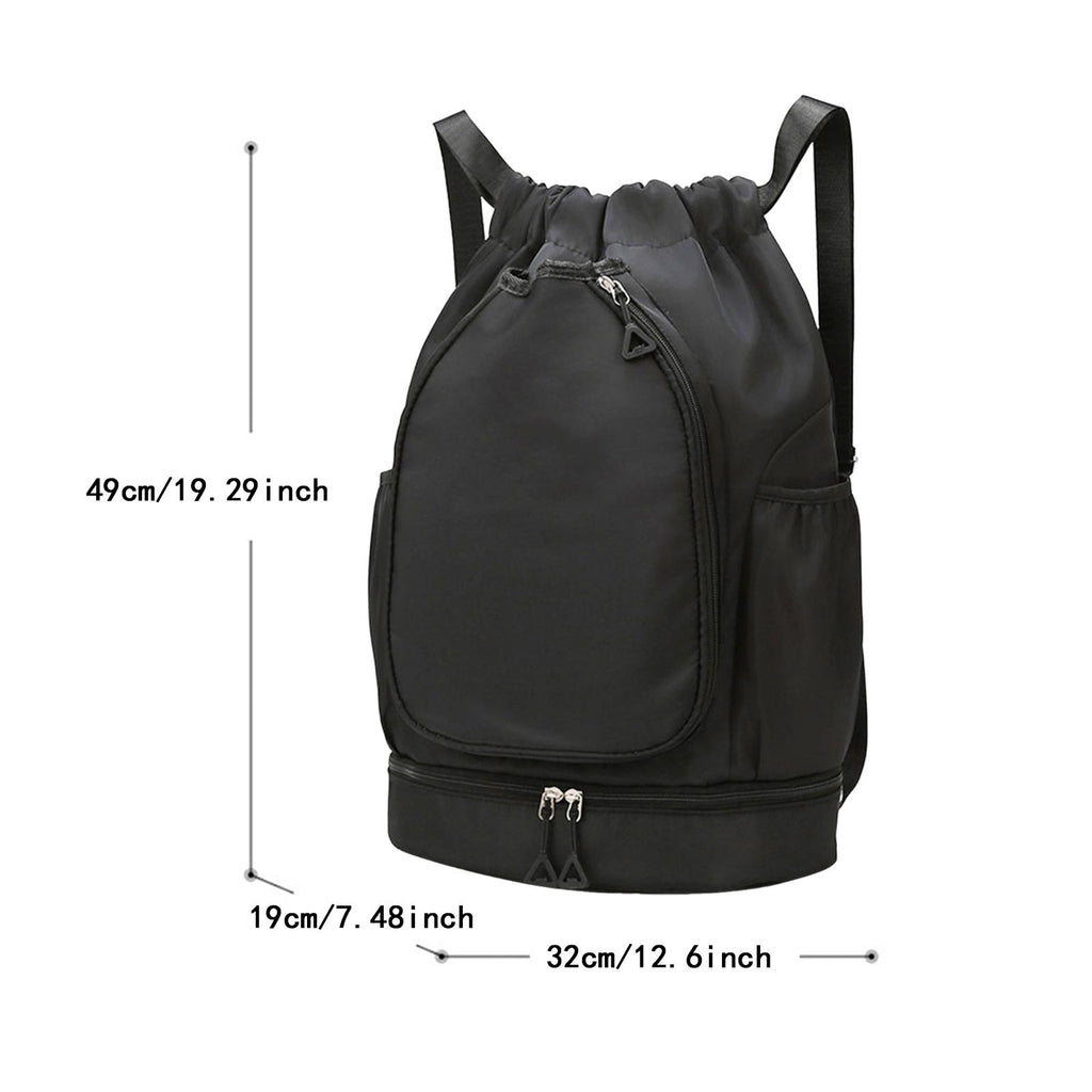 【Spacious layout】: Featuring a dedicated shoe compartment and multiple pockets, this sport drawstring handbag offers ample storage space for all your sports gear