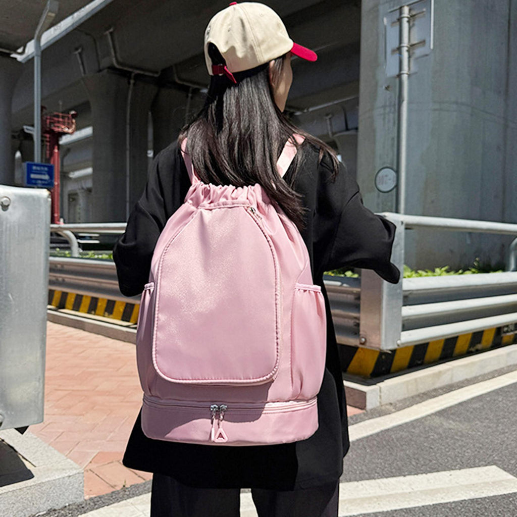 【Spacious layout】: Featuring a dedicated shoe compartment and multiple pockets, this sport drawstring handbag offers ample storage space for all your sports gear