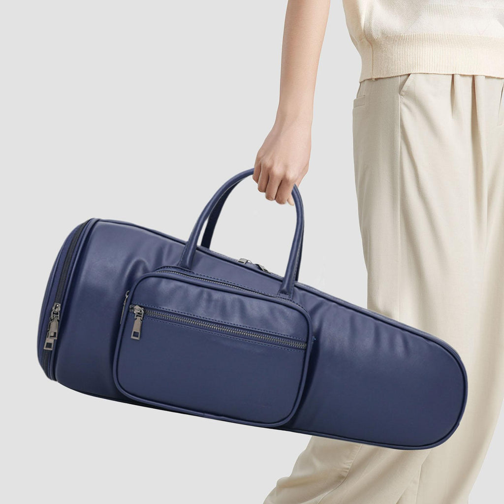 Maxbell Thick Suona Bag Travel Accessories PU Leather Musical Instrument Storage Bag blue