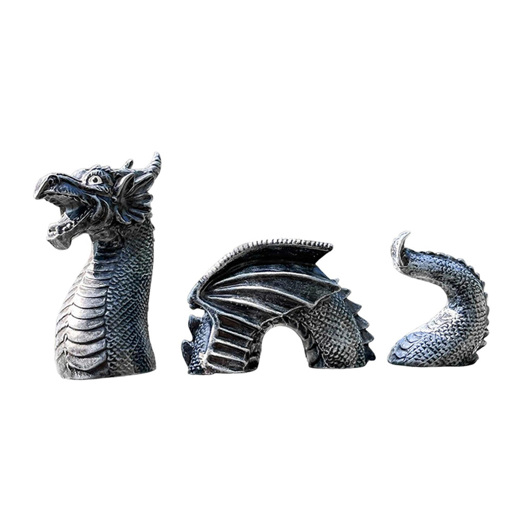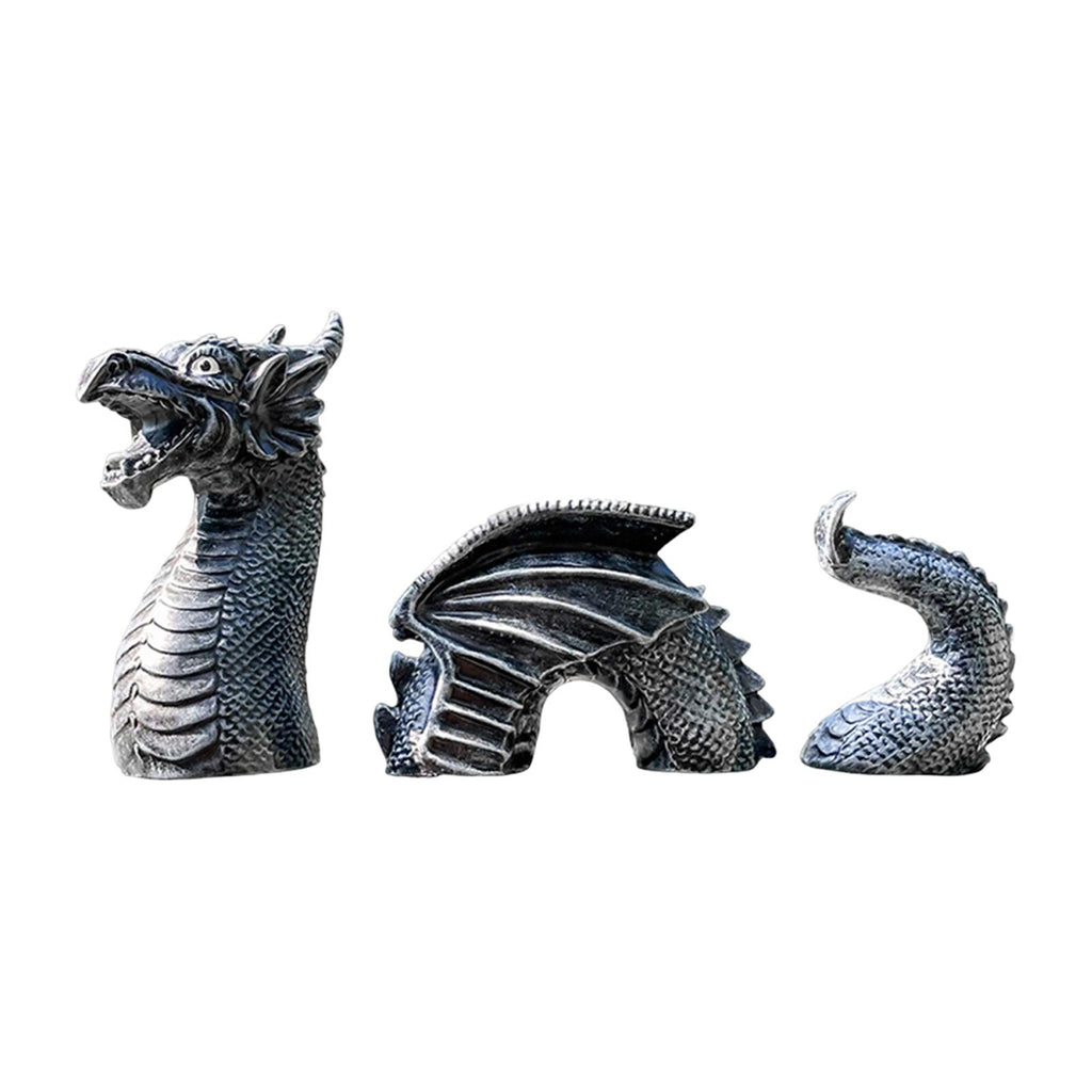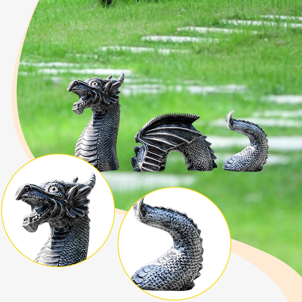 Three Section Dragon Sculpture Landscape Ornament for Outdoor Balcony Garden Black