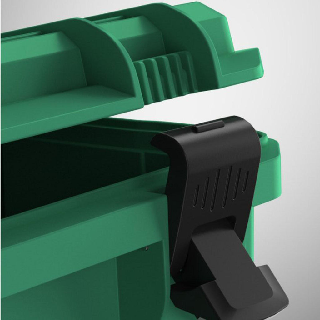 【Material】The toolbox door is made of sturdy PP plastic and steel material that is wear resistant. It features a thick sealing design that prevents moisture or water from seeping in, protecting your tools and supplies from damage caused by harsh weather conditions