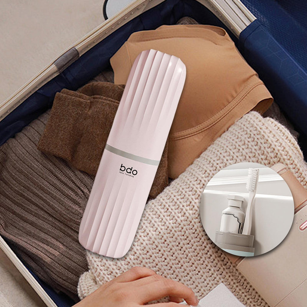 Maxbell Toothbrush Toothpaste Travel Case Storage Container for Hotel Shower Camping S Pink
