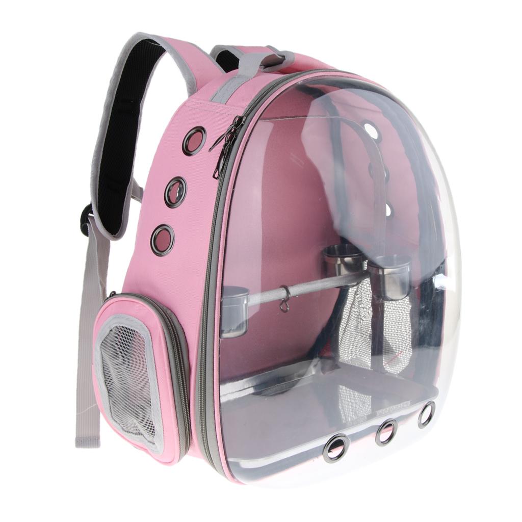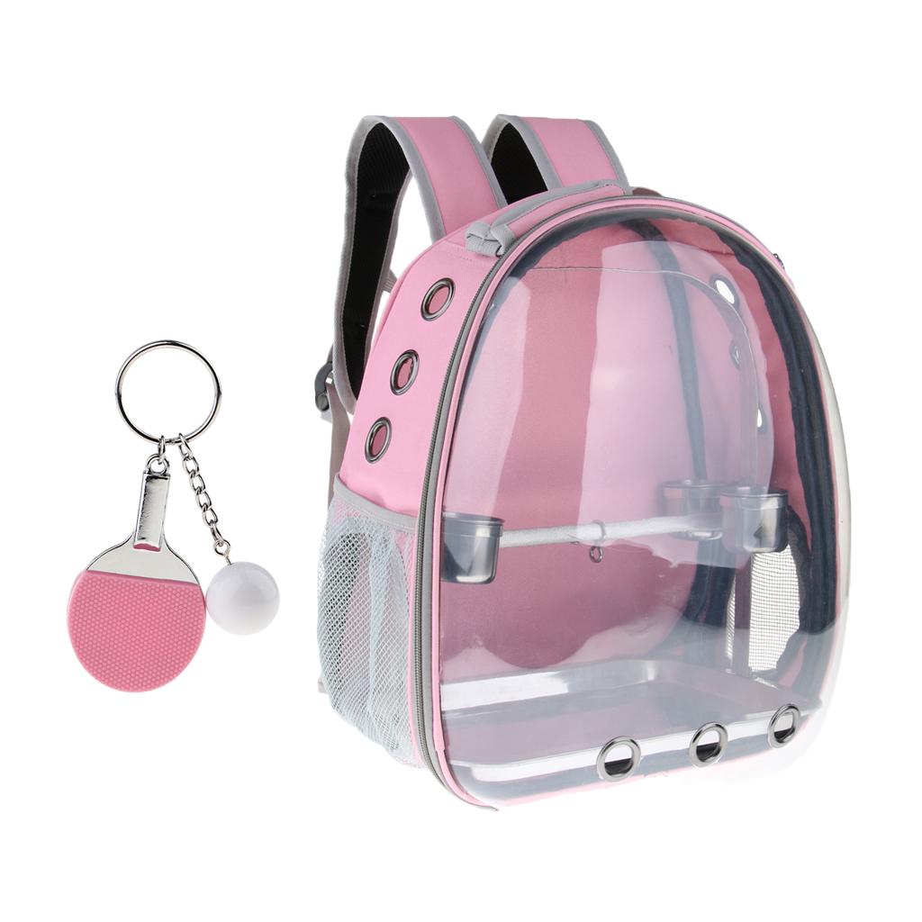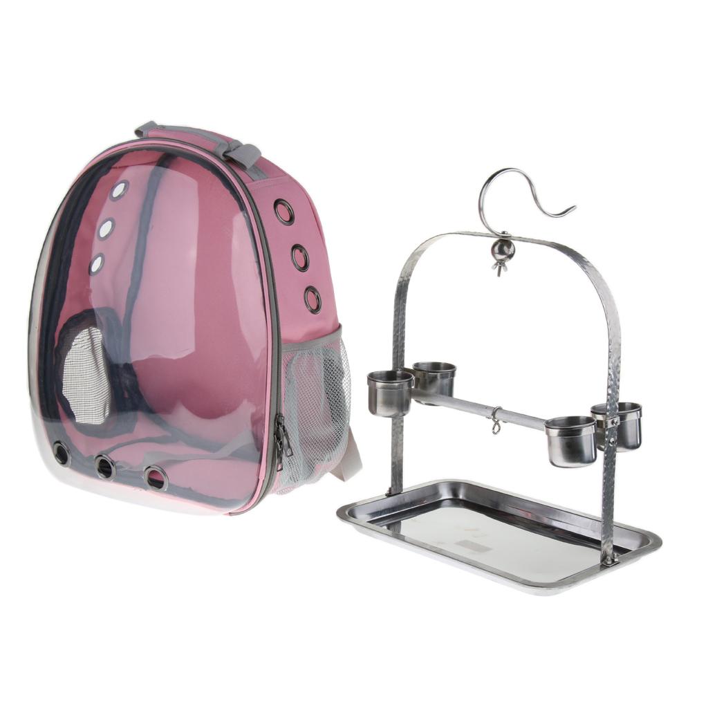 Maxbell Travel Bird Parrot Cage Carrier with Stand Perch Cup w/Key Ring Pendant Pink