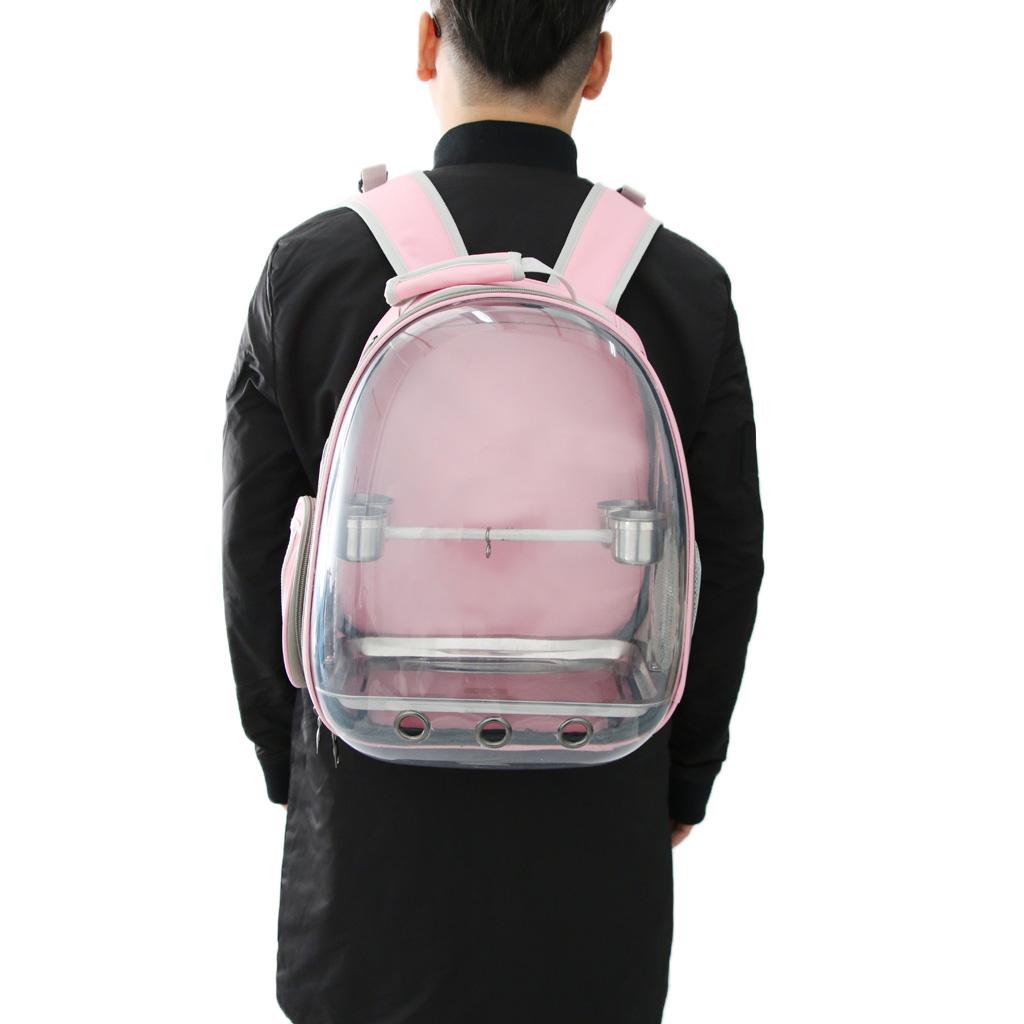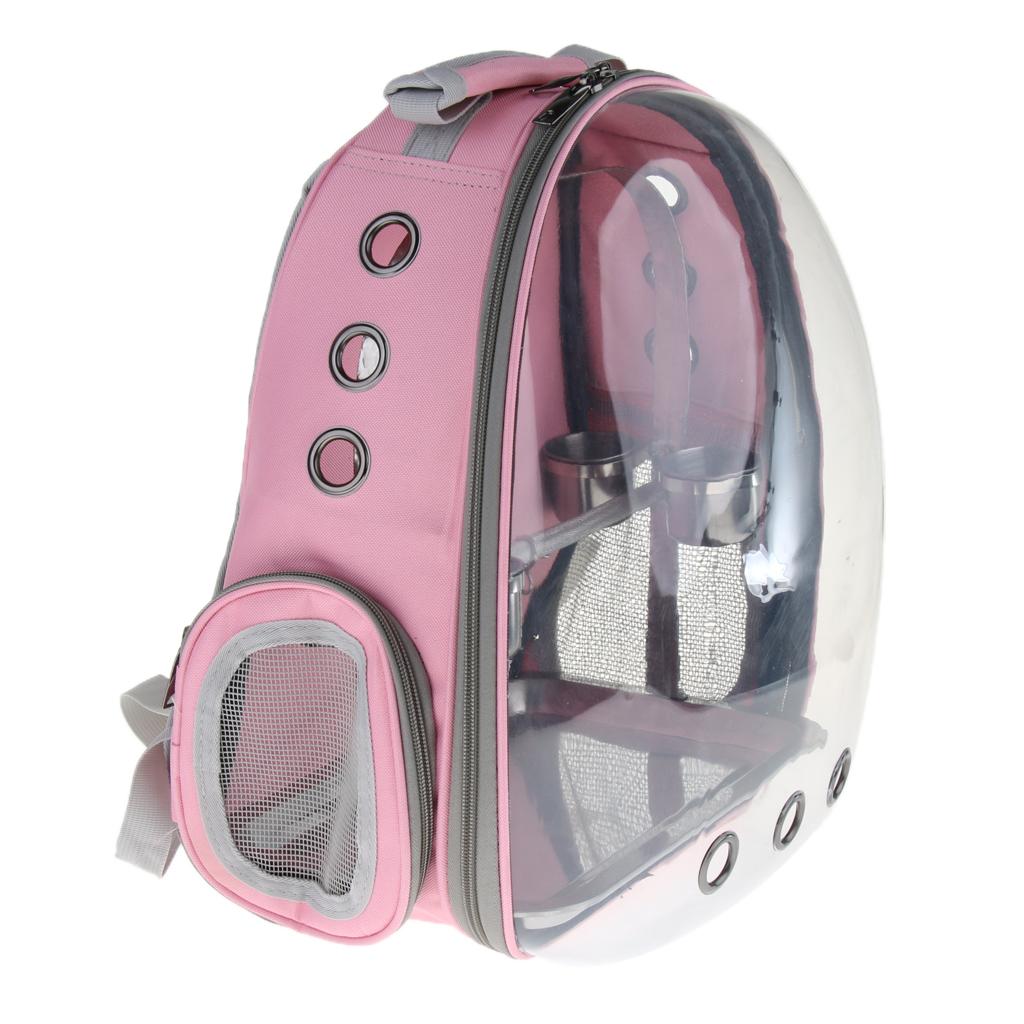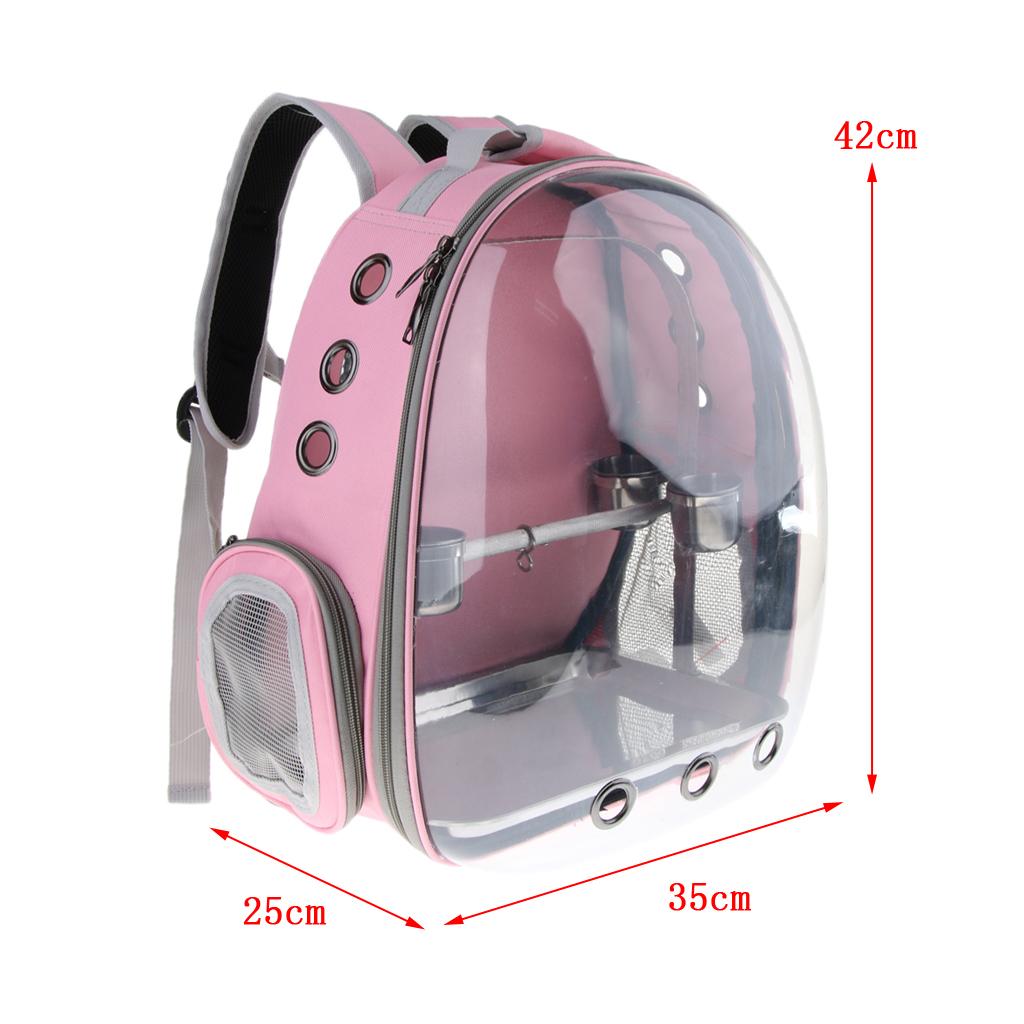 Maxbell Travel Bird Parrot Cage Carrier with Stand Perch Cup w/Key Ring Pendant Pink