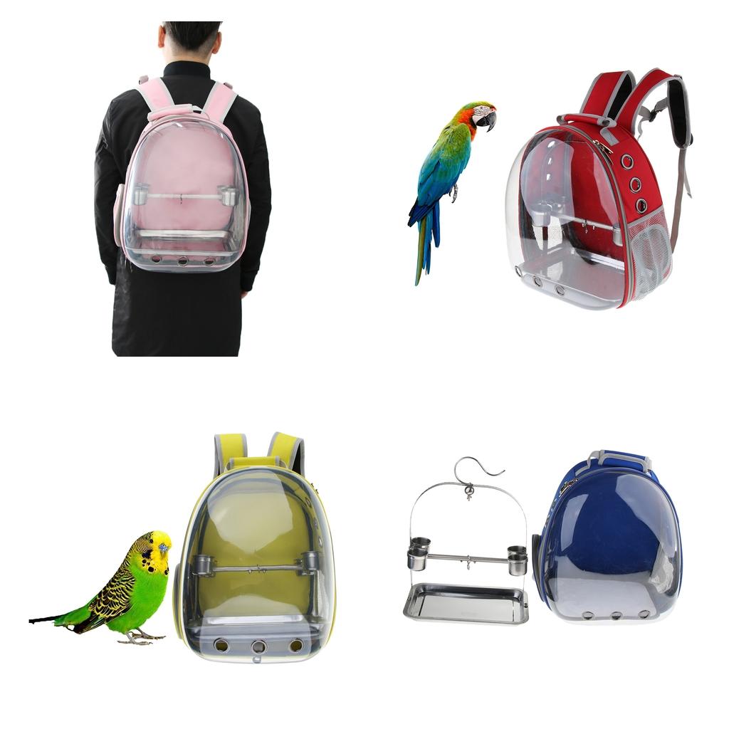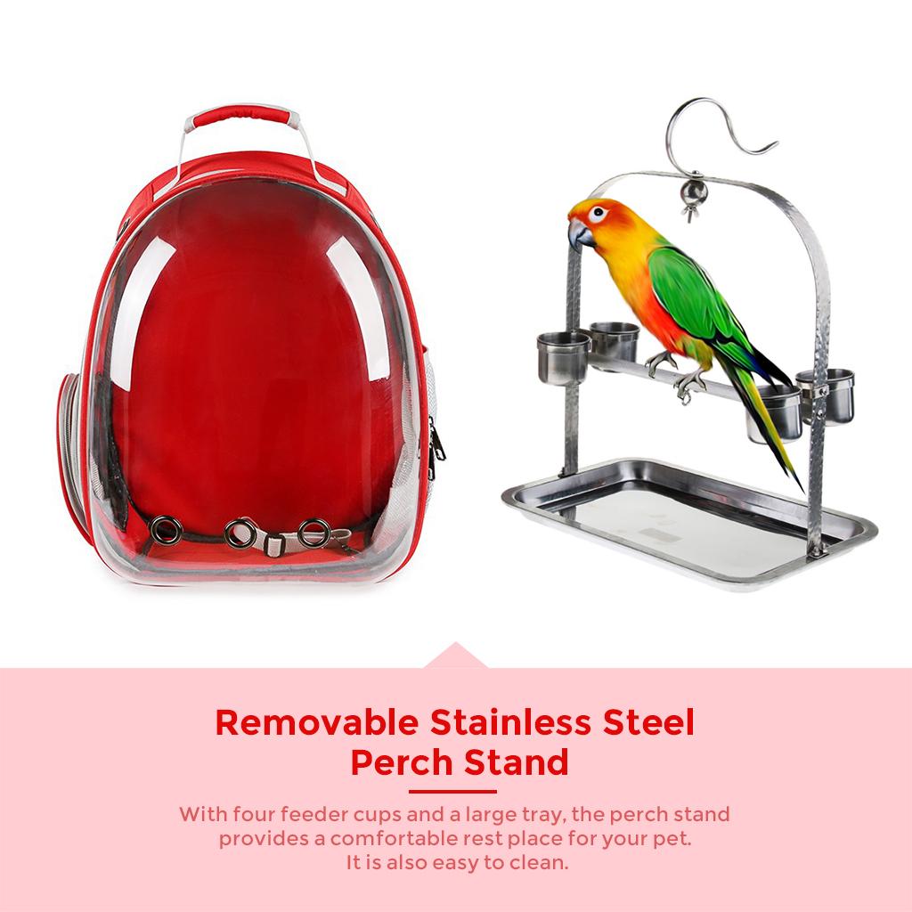 Pet bird parrot outdoor travel carrier cage with stand perch.