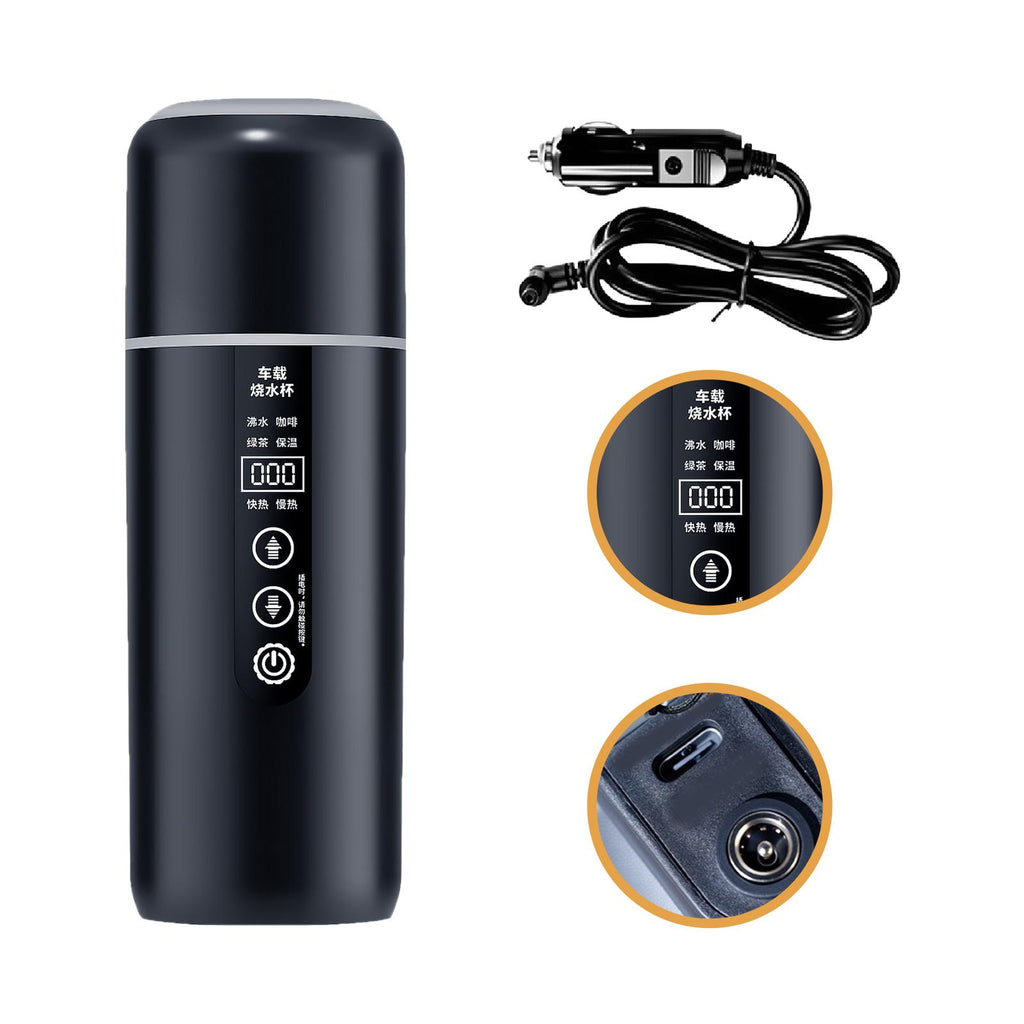 Travel Electric Kettle Warmer Travel Coffee Mug for Family Cars Outdoor Work black