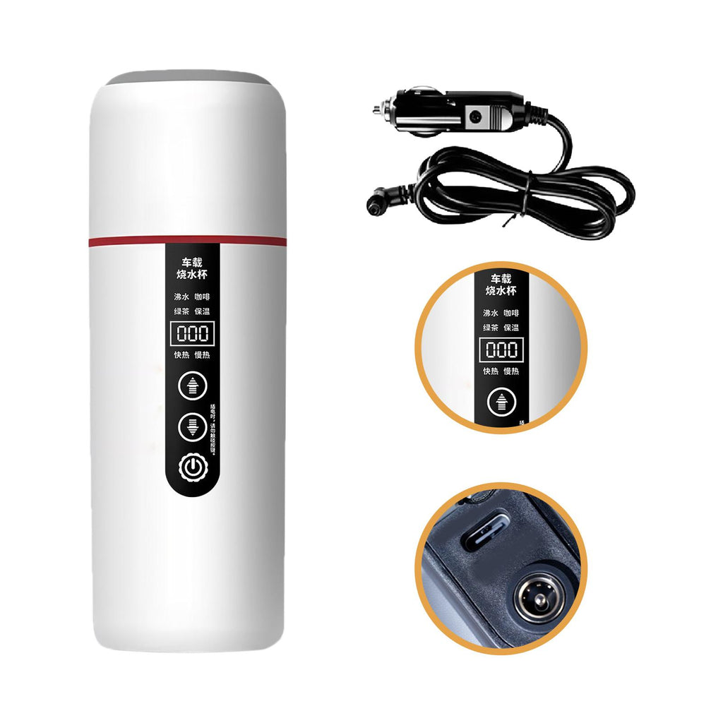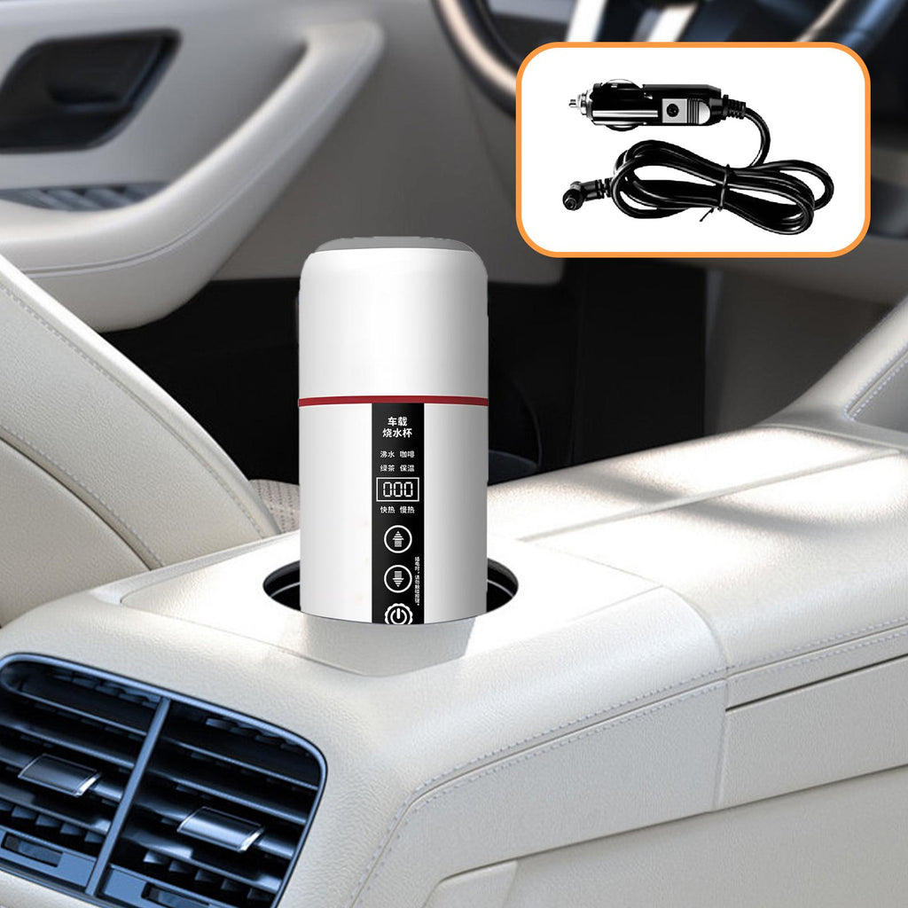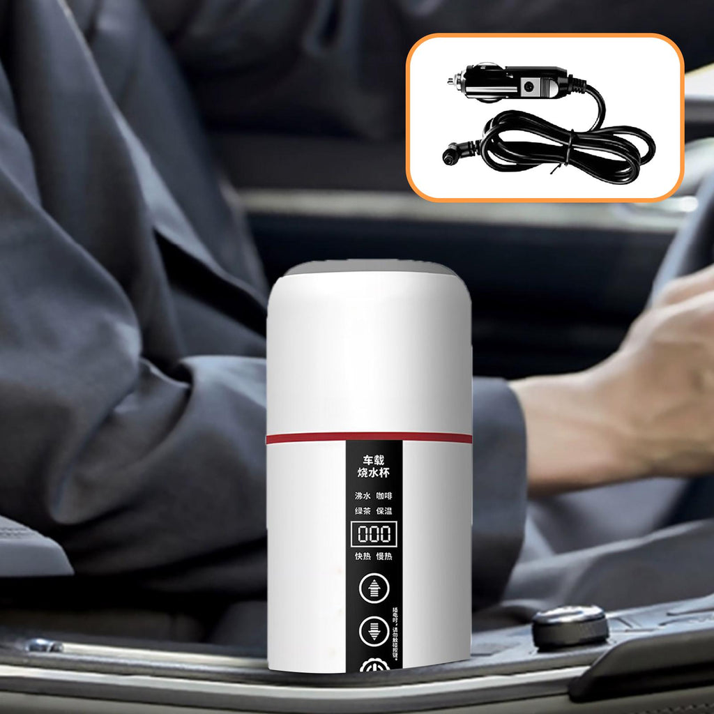 Travel Electric Kettle Warmer Travel Coffee Mug for Family Cars Outdoor Work White