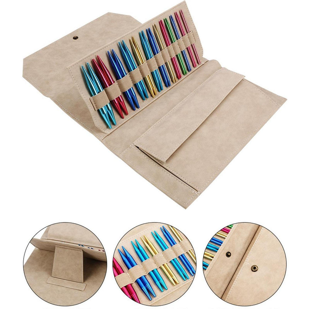 - 【Wide Application】:Features 13 elastic slots and additional compartments to securely hold interchangeable circular pins, crochet hooks, yarn craft tools, scissors, metal wires, and other knitting accessories