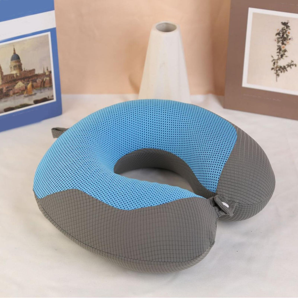 Travel Pillow Ergonomic Soft Head and Neck Support for Home Office Car Train Blue Gray