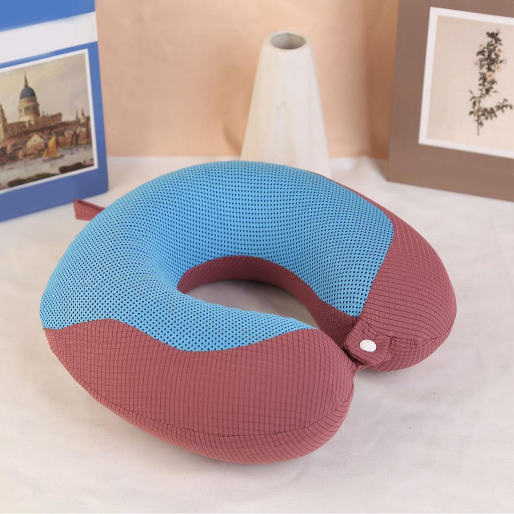 Travel Pillow Ergonomic Soft Head and Neck Support for Home Office Car Train Blue Red
