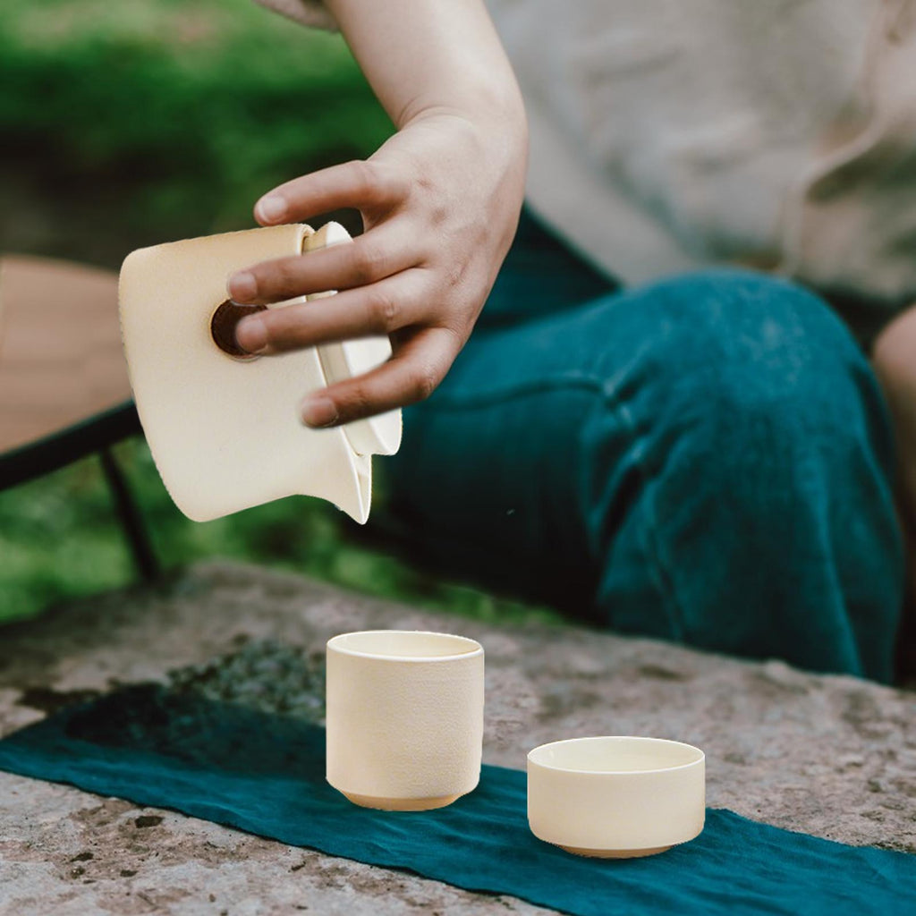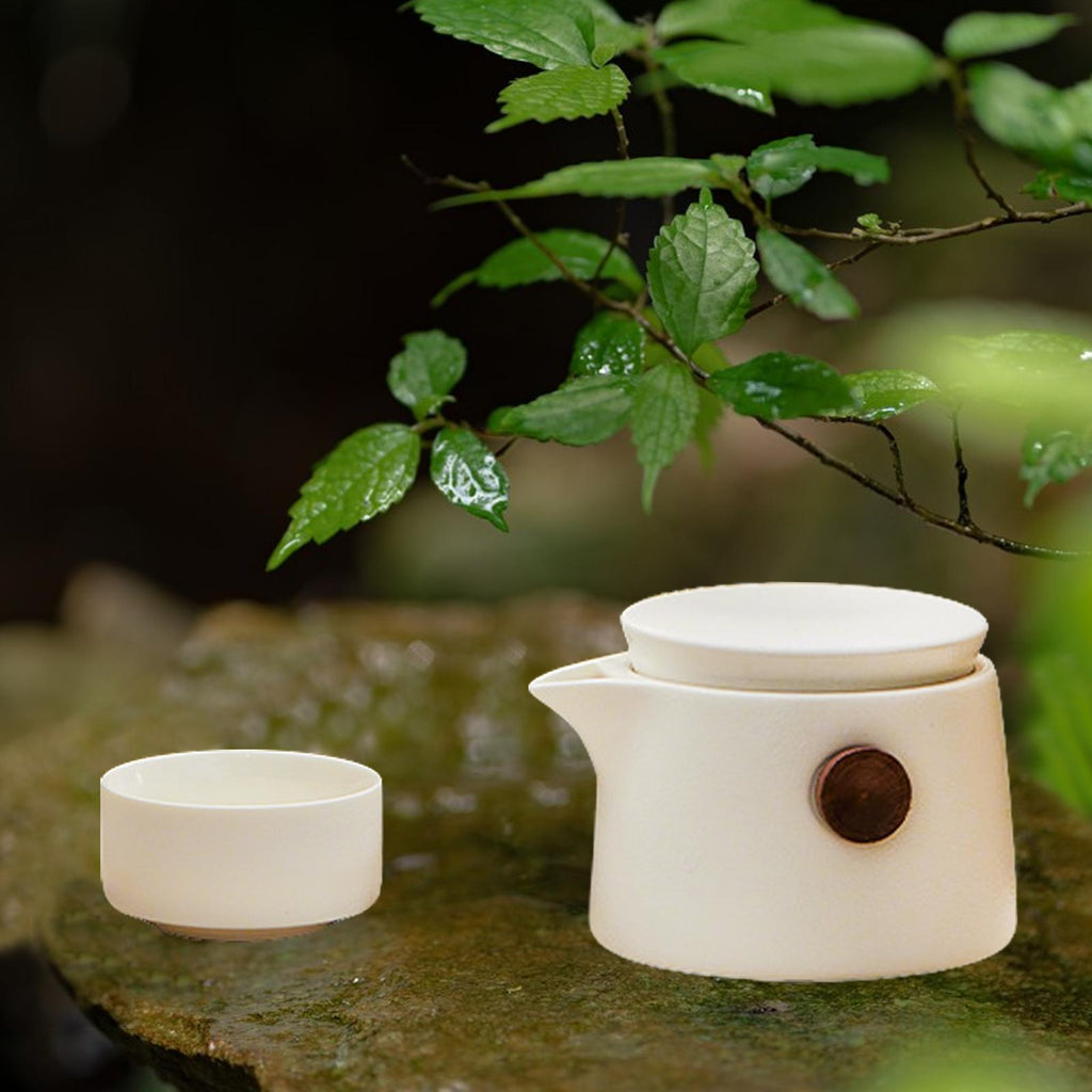 【Tea Set】Mini Travel tea set with 1x Ceramic teapot(190ML), 3x tea cups (55ML and 70ML ), and a storage case for easy carrying, allowing you to enjoy the pleasure of tea anywhere