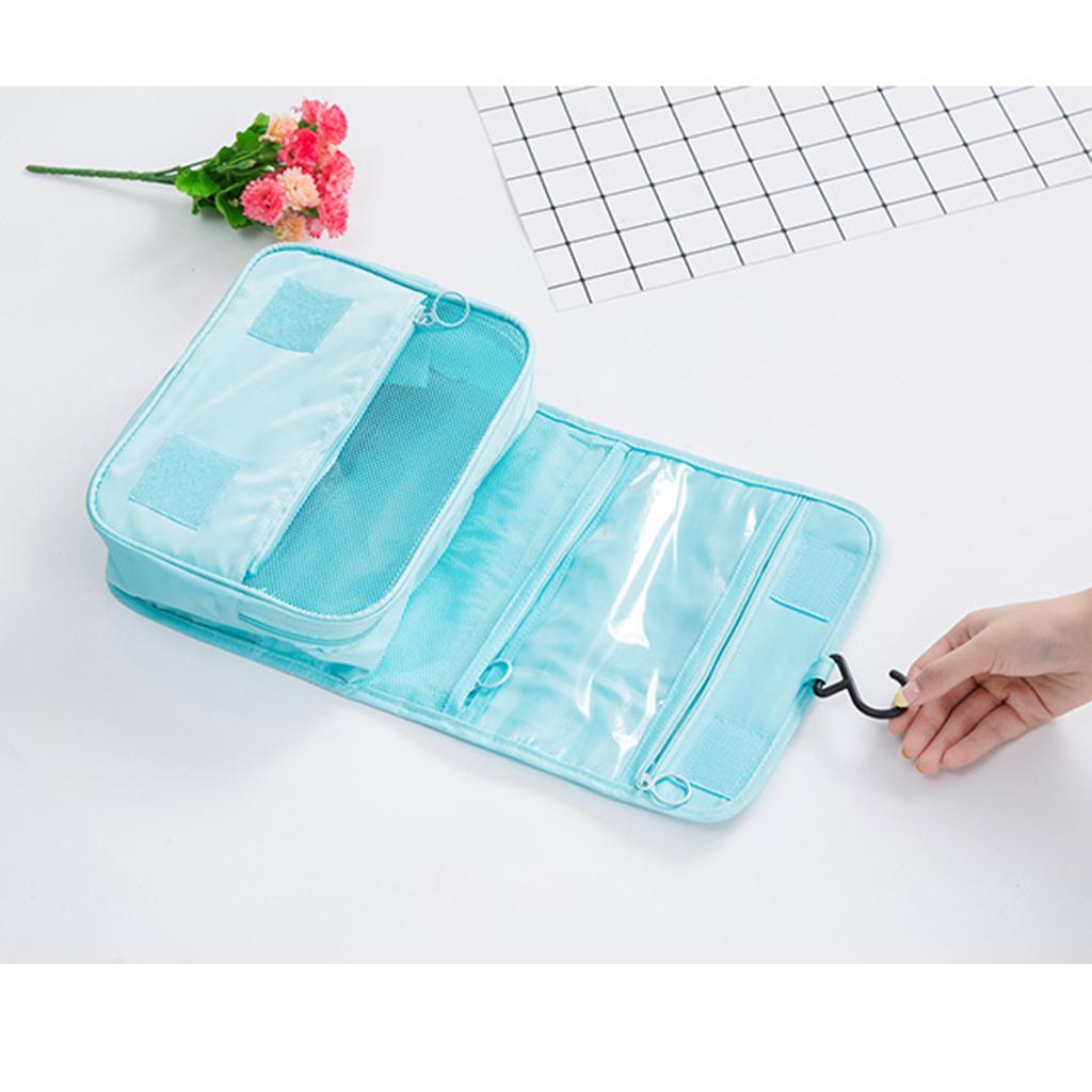 Many compartments in the bag,great organizer for cosmetics,life products.perfect for travel,camping.