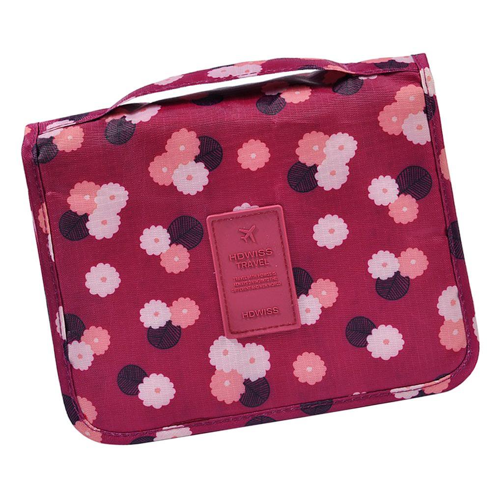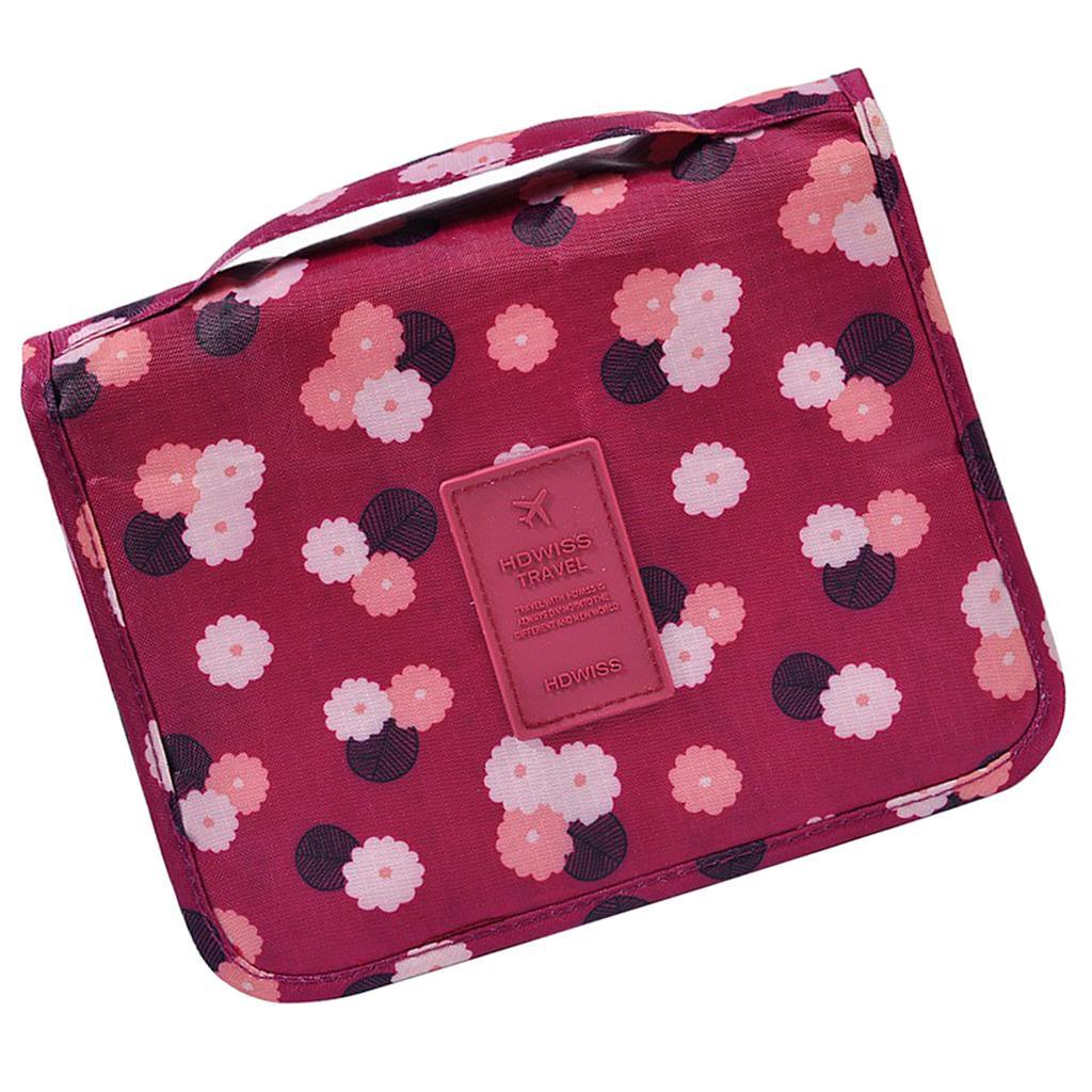 Maxbell Travel Toiletry Unisex Makeup Cosmetic Storage Wash Bag Wine red flowers