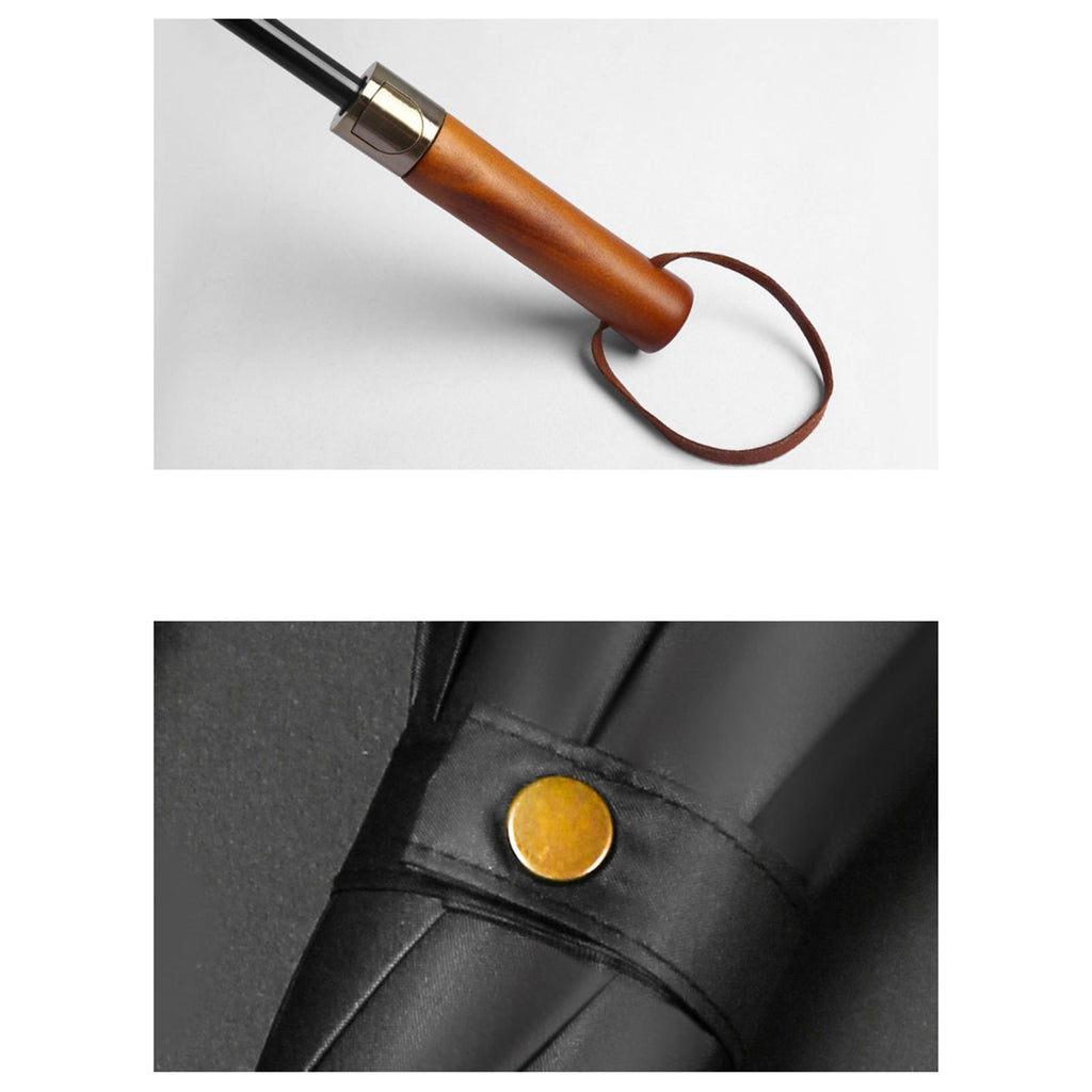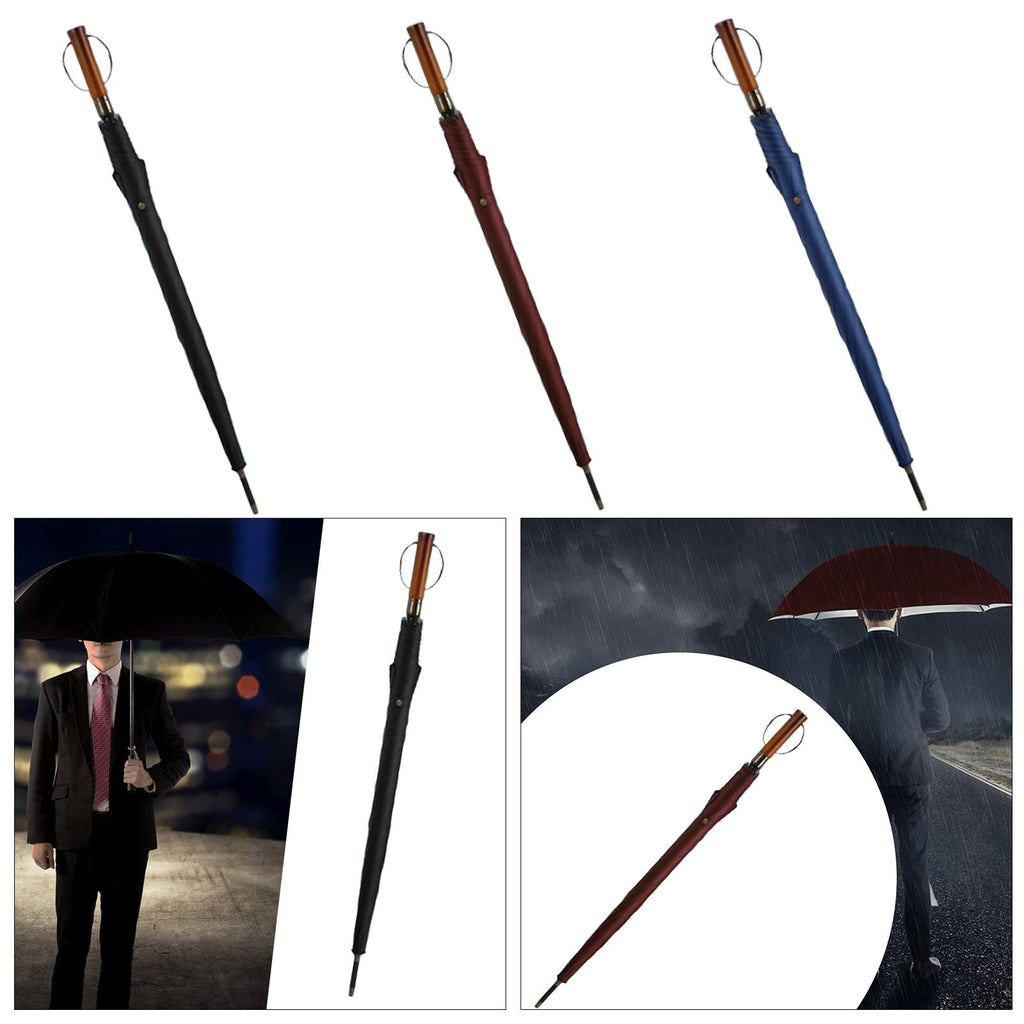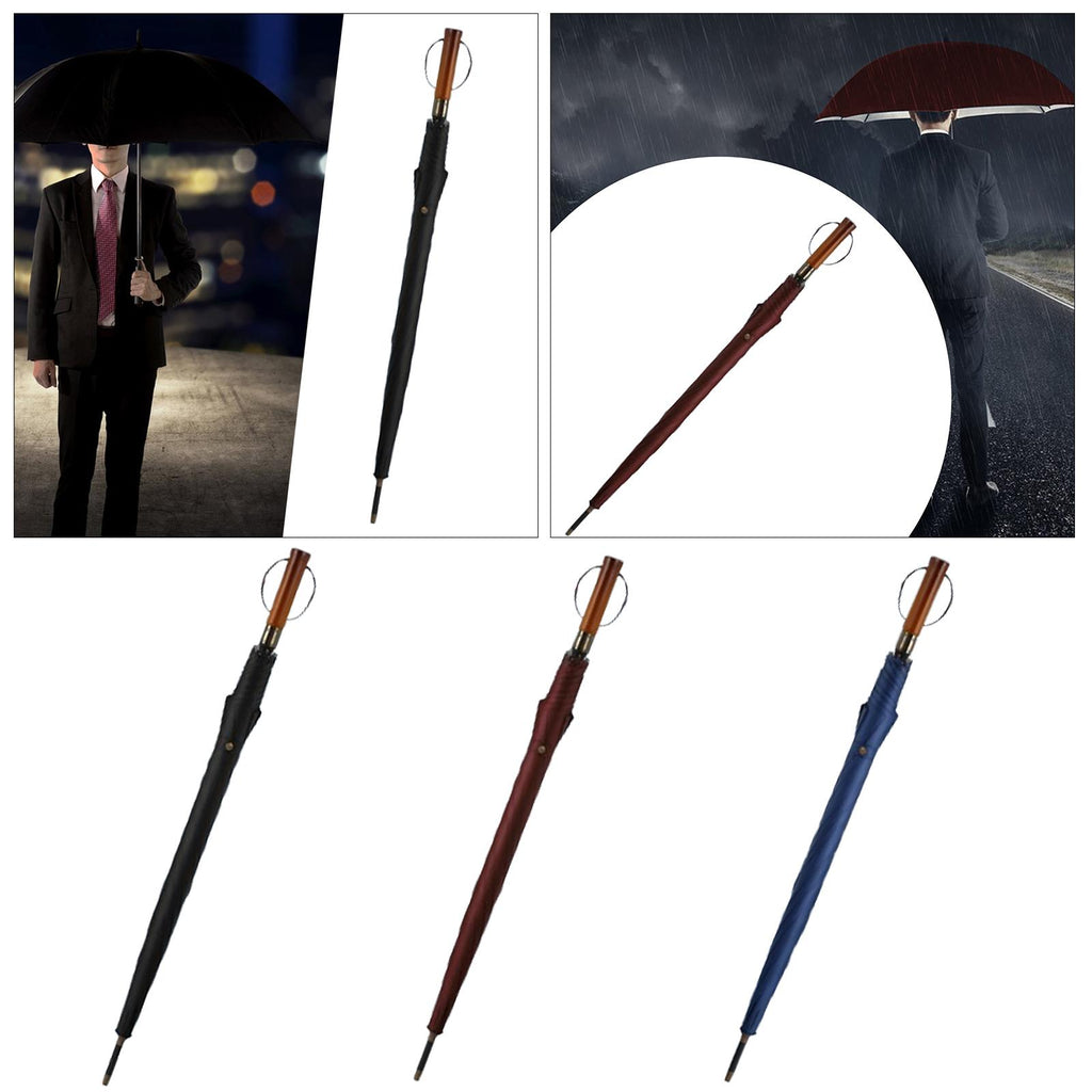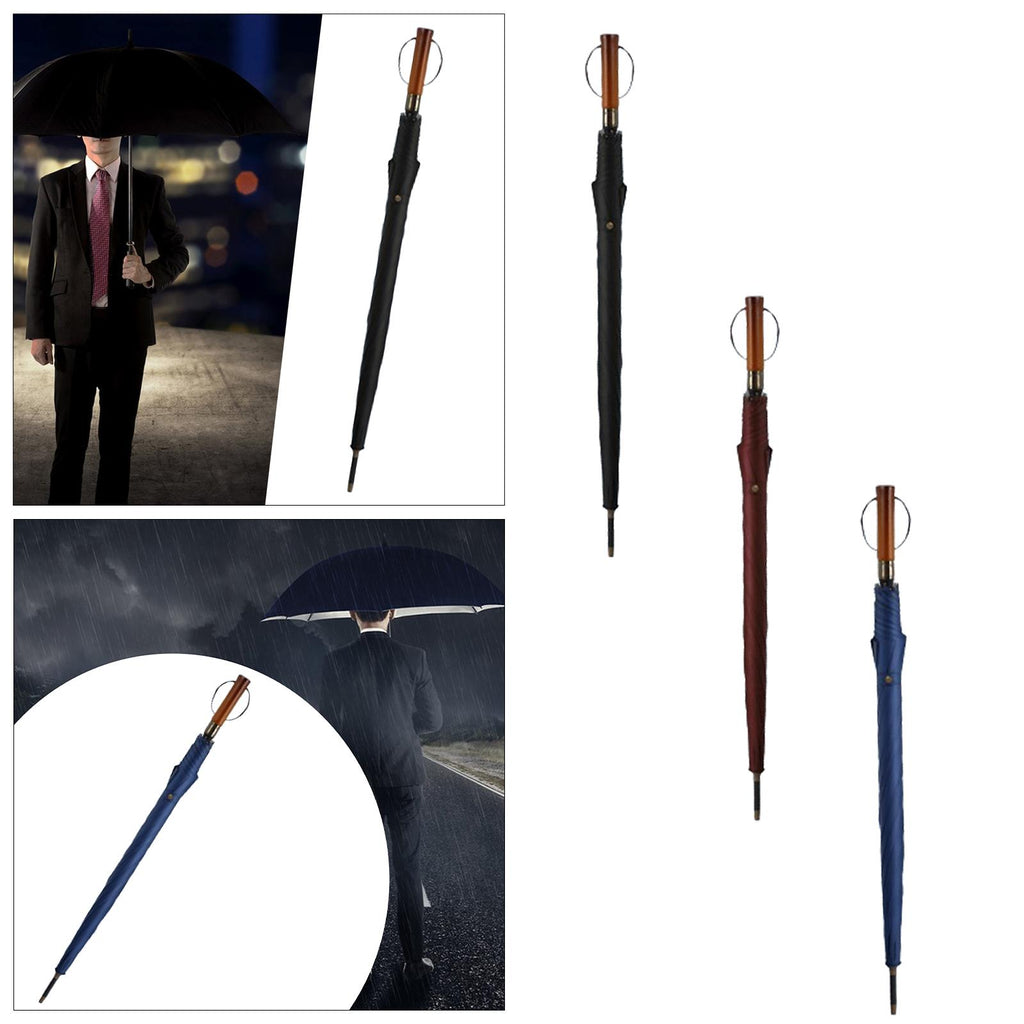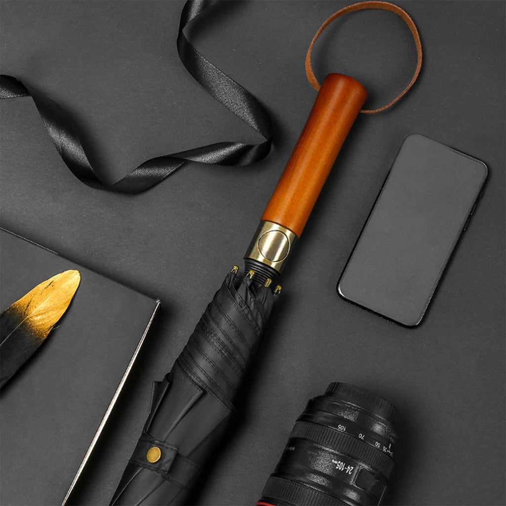Maxbell Travel Umbrella Wooden Handle Umbrella for Outdoor Activities Camping Travel Black