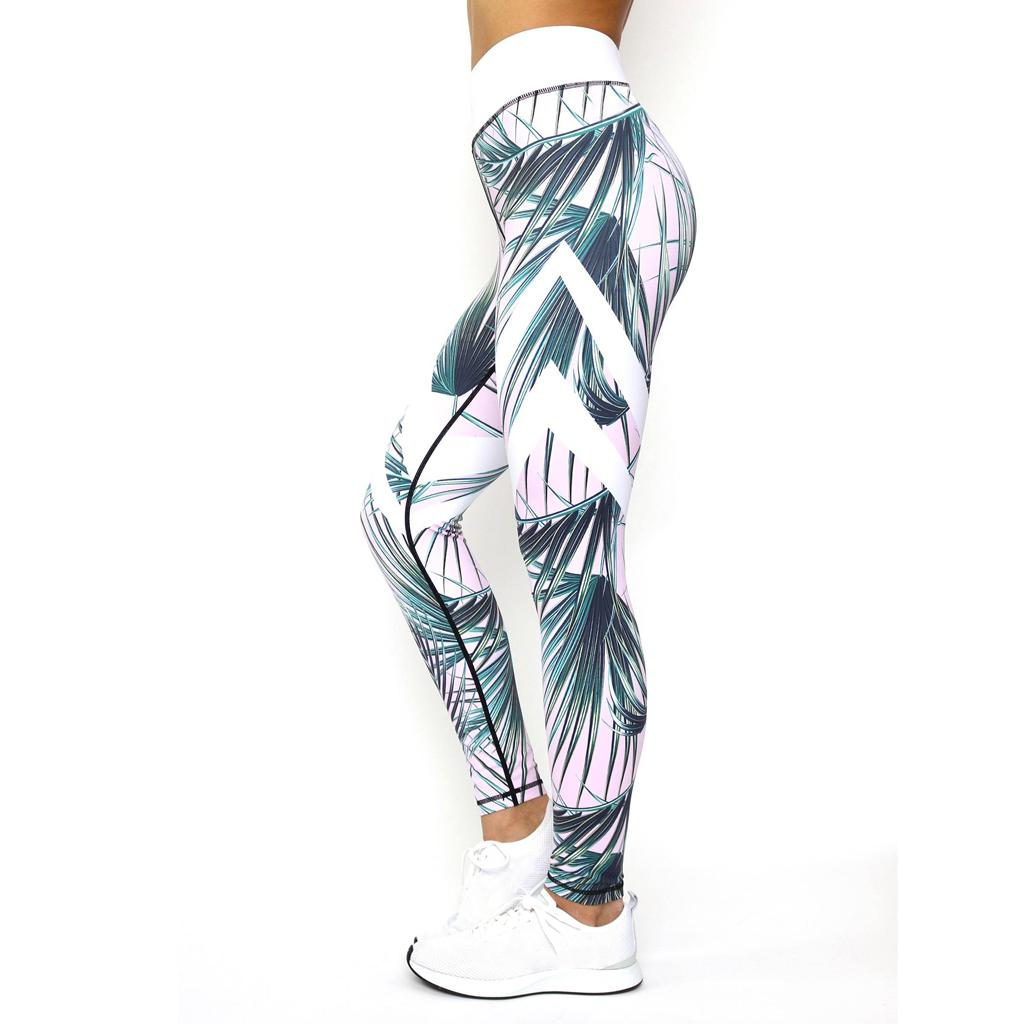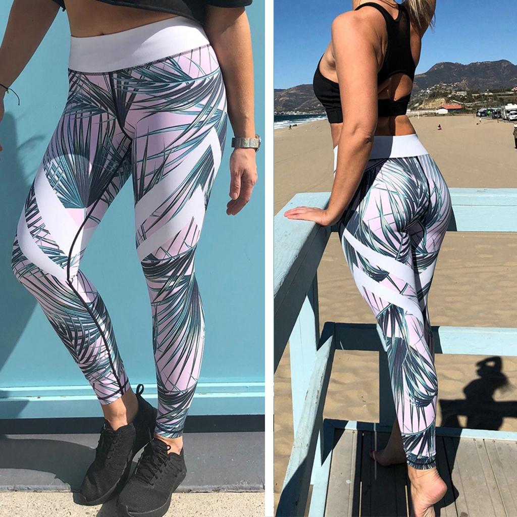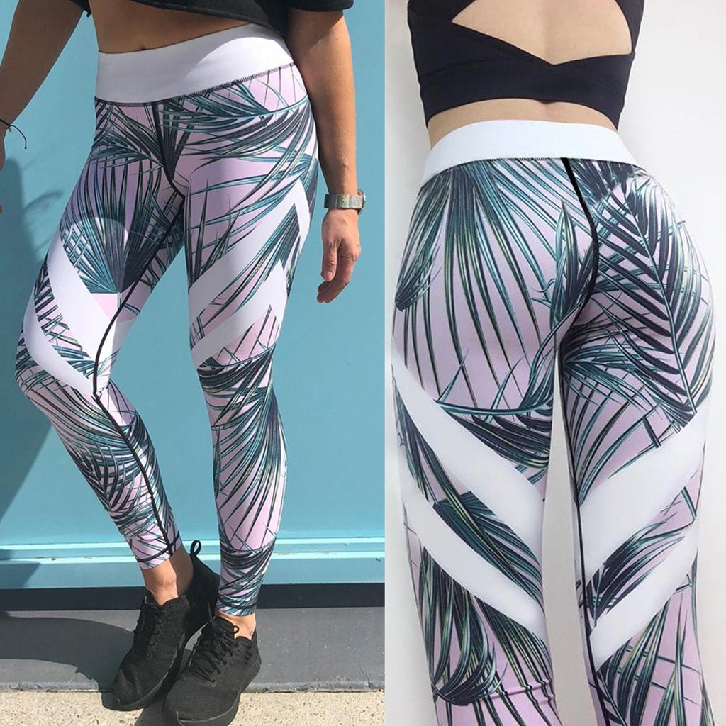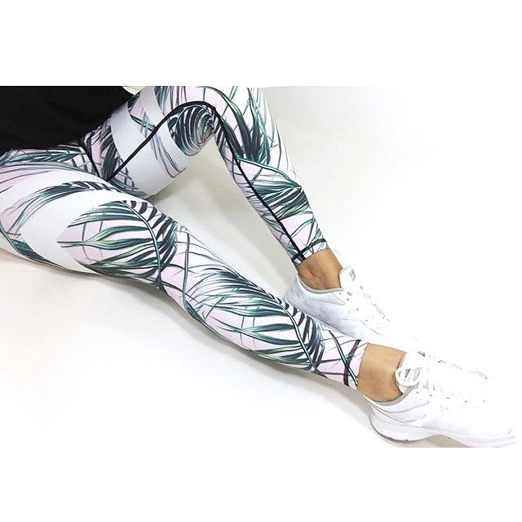 Maxbell Tropical Jungle Style Womens Yoga Leggings High Waist Elastic Sports Pants L