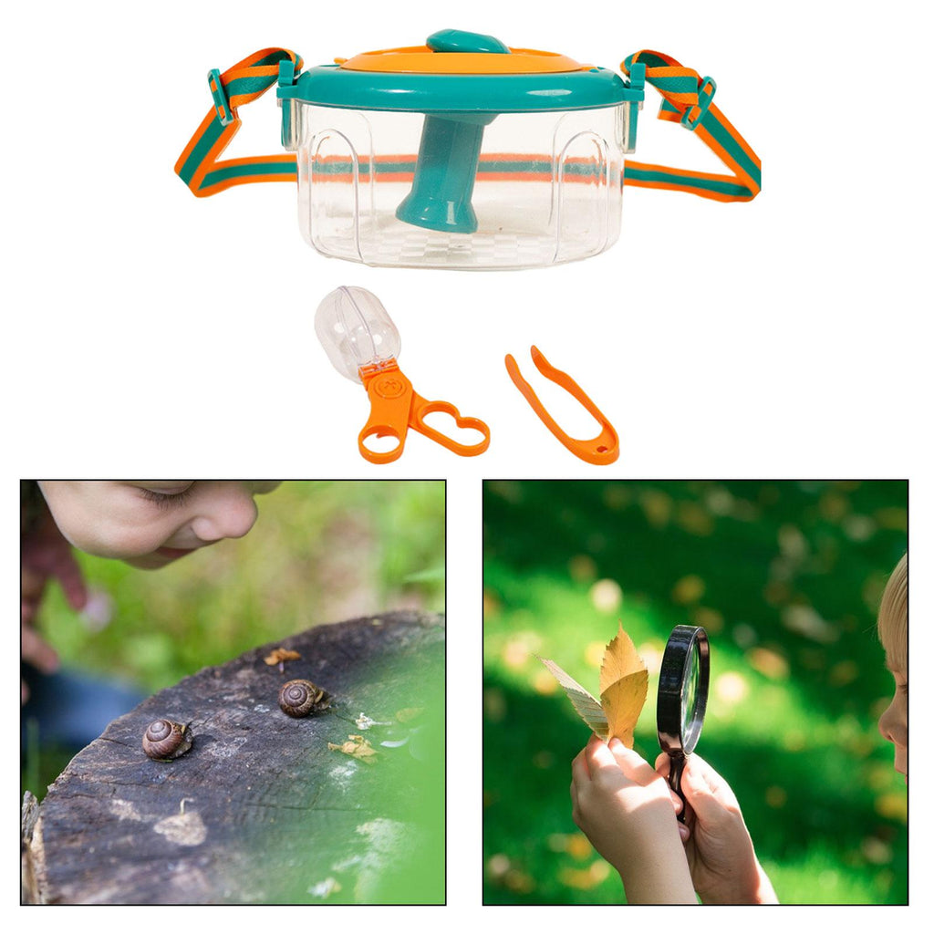【 Box】: The Bug container viewer is equipped with a magnifying glass, clips, tweezers, etc. Children can use this outdoor observation toy to observe leaves, flowers or plants.